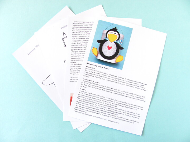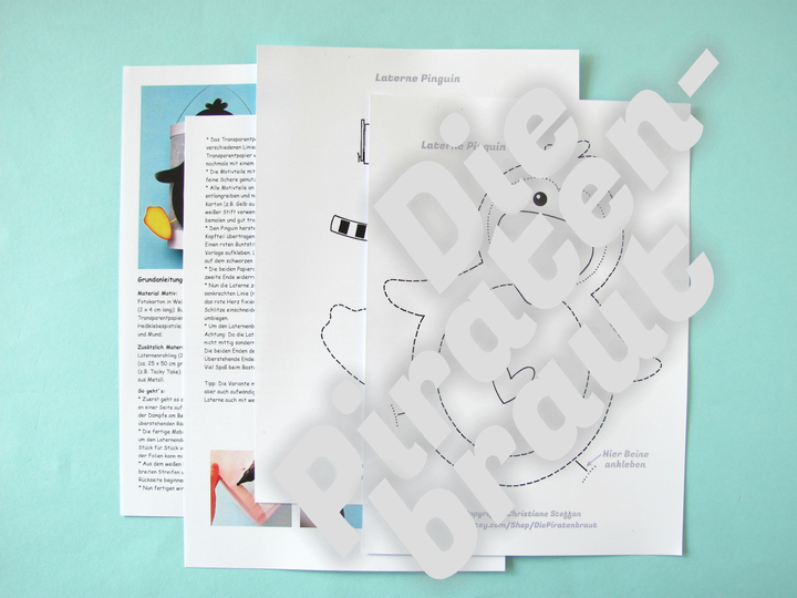 Der Download besteht aus zwei Vorlagen-Seiten (DIN A4) sowie einer zweiseitigen Grundanleitung und steht als PDF-Datei zur Verfügung. Die Laterne bzw. das Pinguinmotiv ist einfach nachzuarbeiten. Bei Fragen könnt Ihr mich unter Kontakt anschreiben, ich helfe sehr gerne.