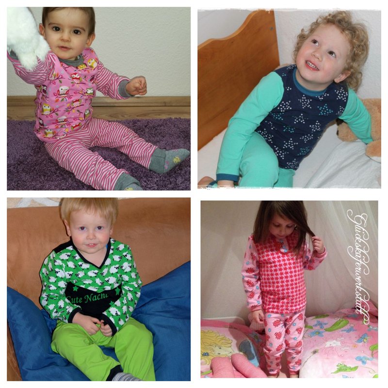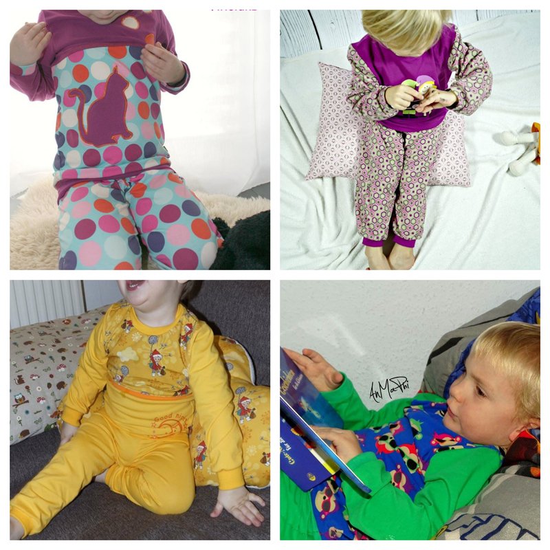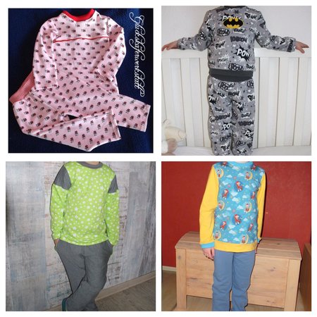 Mit diesem Ebook könnt ihr eurem Kind einen gemütlichen Schlafanzug nähen. Er besteht aus einem langärmeligem Oberteil und einer Hose. Dieses könnt ihr mit Bündchen oder Gummizug am Bauch nähen. Dieser Basic-Schnitt ist auch für Nähanfänger geeignet und kann beliebig „gepimpt“ werden. Die Anleitung zeigt euch hierfür, wie man Applikationen macht, statt eines Rundhals- einen V-Ausschnitt näht, Rückeneinsätze macht und Raffungen mit einbringt.
