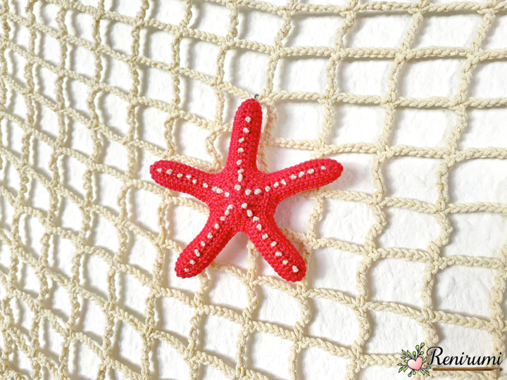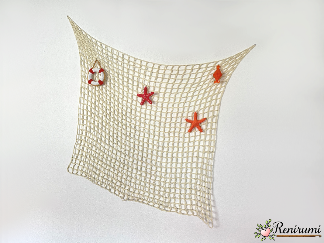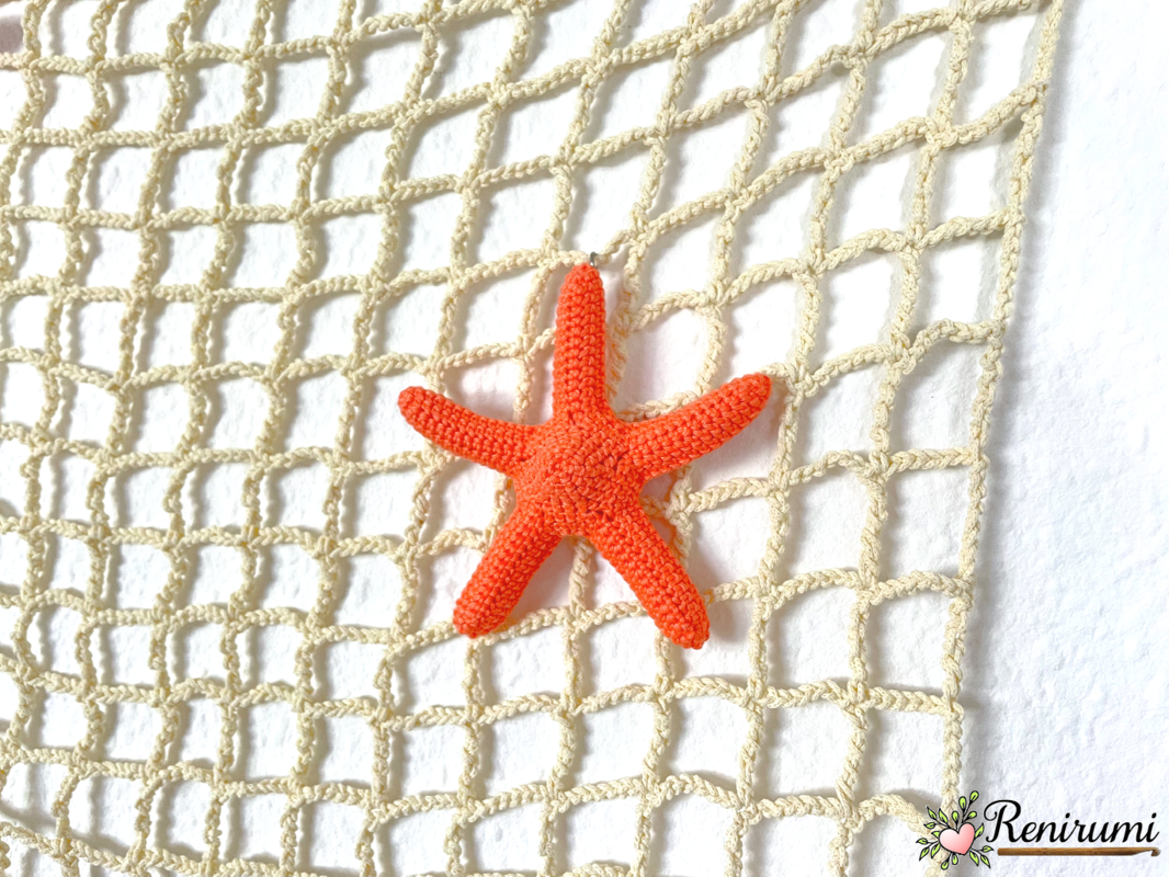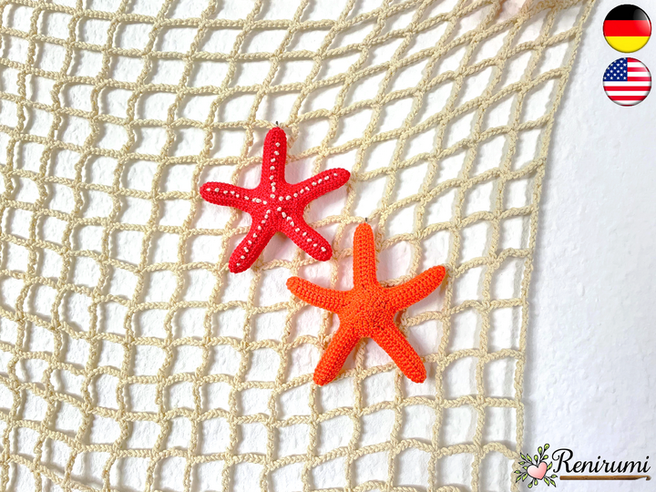 Mit dieser 6-seitigen, reichlich bebilderten Häkelanleitung kannst du das Fischernetz und den Seestern einfach nachhäkeln. Das Fischernetz kann individuell vergrößert werden. So kannst du bspw. ein kleines Netz mit 10x10 Kästchen häkeln oder ein großes mit 30x30 Kästchen oder ganz nach belieben.
