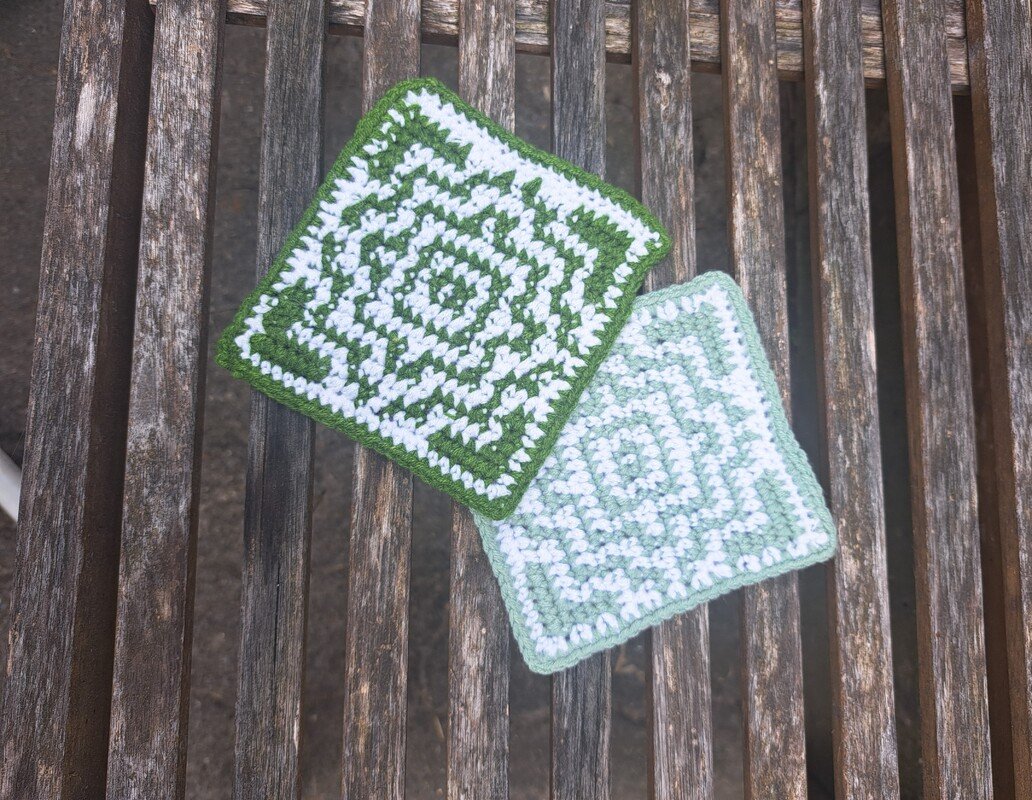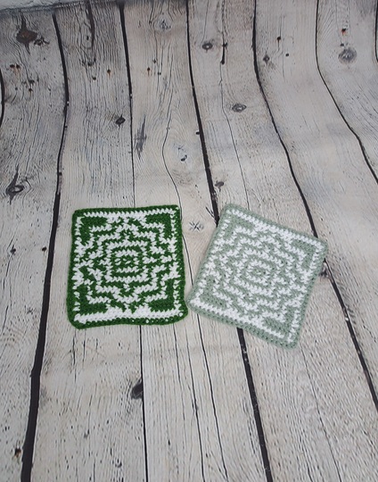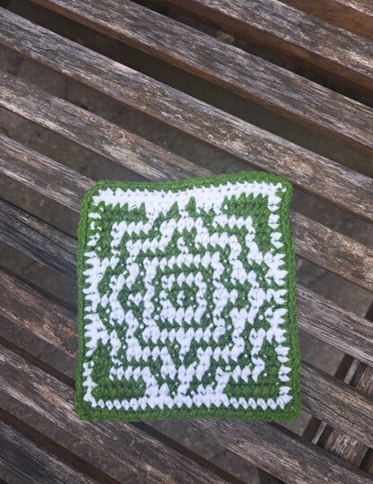 Dies ist eine Häkelanleitung für einen Untersetzer im Mosaik Design. Die Untersetzer können entweder in Baumwolle oder Acryl Garn gearbeitet werden. Die Untersetzer eignen sich hervorragend, um Garn Rest aufzubrauchen. Das Muster entsteht mit der Tapestry Häkel Technik, die nicht ins Detail erklärt ist, man sollte da Grundkenntnisse haben. Damit das Bild klarer wird kann man die Rückseiten jeweils Rückwärts häkeln.