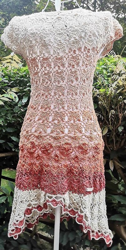 Sie/es läßt sich ganz mühelos an alle Größen anpassen und kann in jeder beliebigen Länge gehäkelt werden. Der untere Rockabschluß kann sowohl gerade, als auch abgerundet gearbeitet werden.