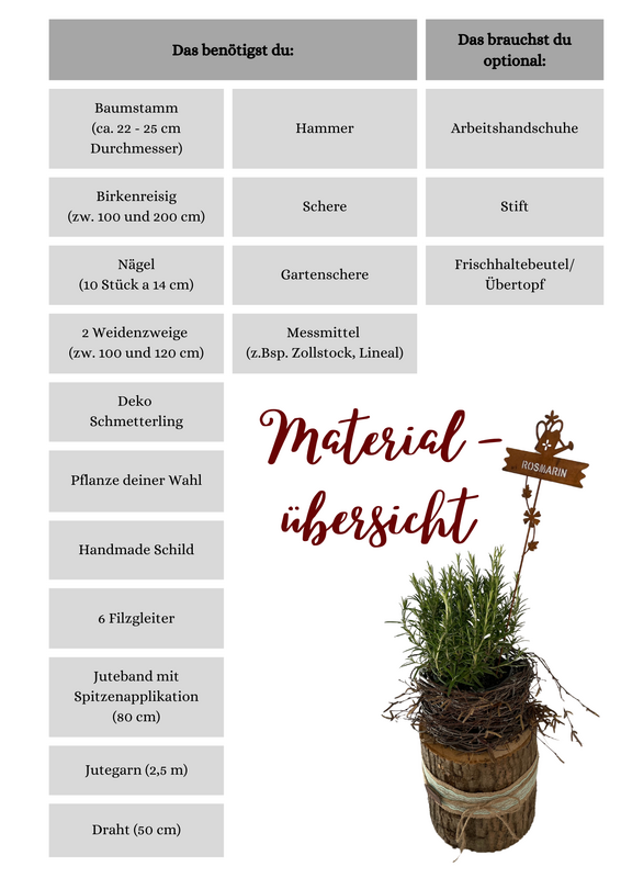 Entdecke mit meiner DIY Anleitung „Stammheld“ eine kreative Alternative zu herkömmlichen Blumentöpfen. Wir fertigen einen wunderschönen Kranz auf einem echten Holzstamm als ideale Einfassung für deine Pflanzen. Eine schöne Alternative zu einem herkömmlichen Blumentopf.