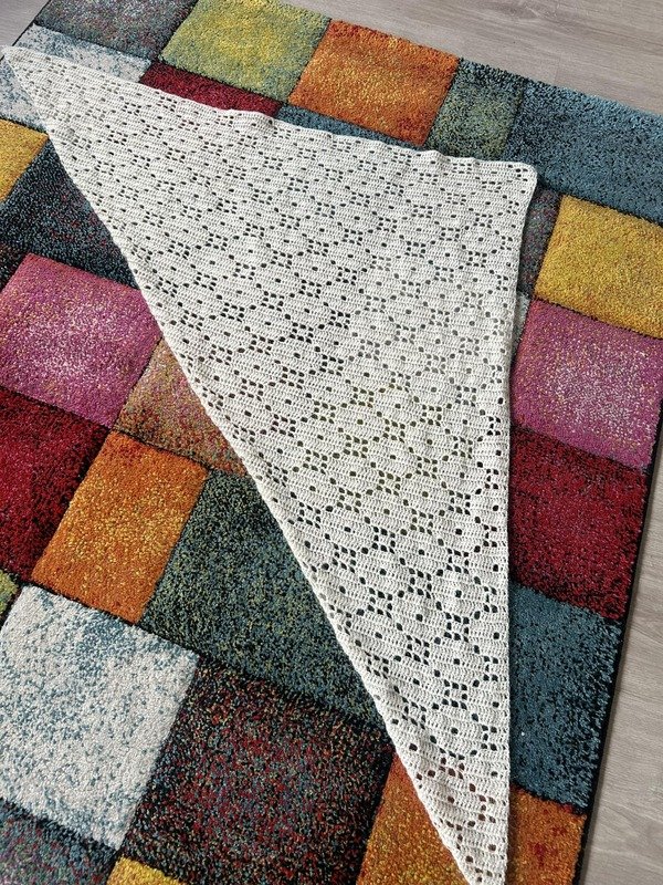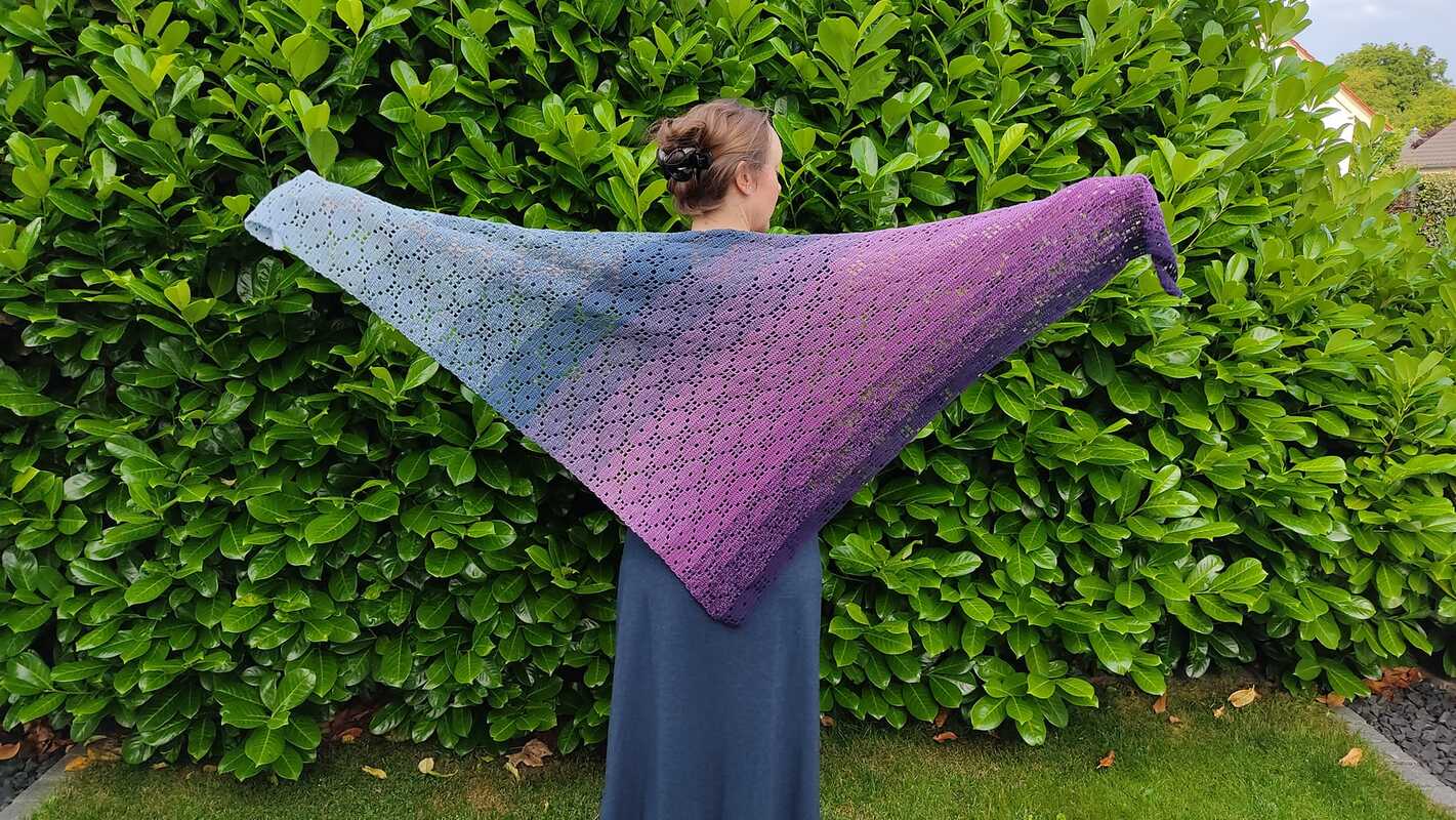 Bei „Retari“ handelt es sich um eine Anleitung, mit welcher ihr ein asymetrisches Dreieckstuch, eine Stola/einen Schal oder einen Tischläufer arbeiten könnt.