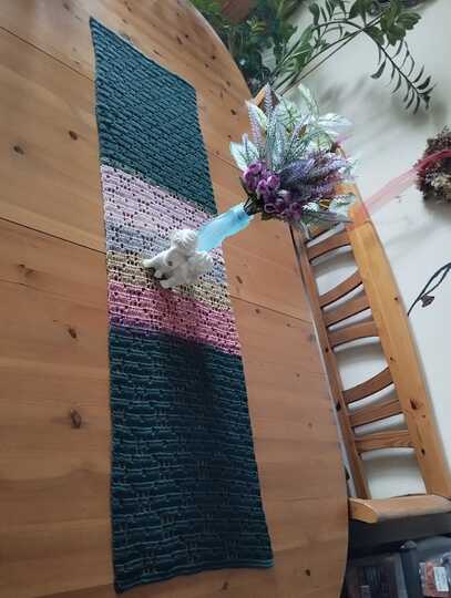 Die Stola/der Schal bzw. der Tischläufer kann in der Breite angepasst werden.
