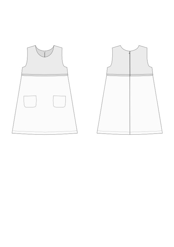 Mit diesem digitalen PDF-Schnittmuster nähst du das ärmellose A-Linien-Kleid GEMMA für Kinder. Das Kleid ist ein echtes Ganzjahres-Lieblingsstück: im Sommer solo getragen, im Winter kombiniert mit T-Shirt und Strumpfhose. Ein verdeckter Reißverschluss sorgt für eine schöne Passform, dazu kommt eine praktische Tasche und ein dekoratives Zierband als hübsches Detail.