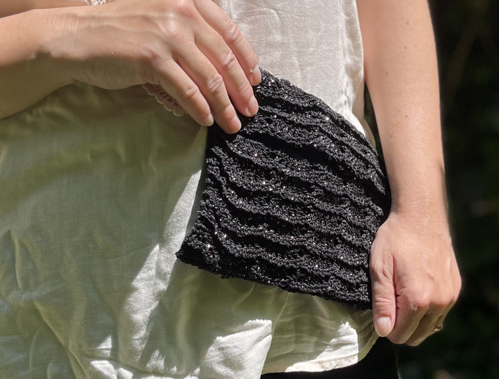 Diese Clutch besticht mit ihrem Glamourfaktor. Durch den glitzernden Beilauffaden passt die Clutch super zu einem eleganten Anlass.