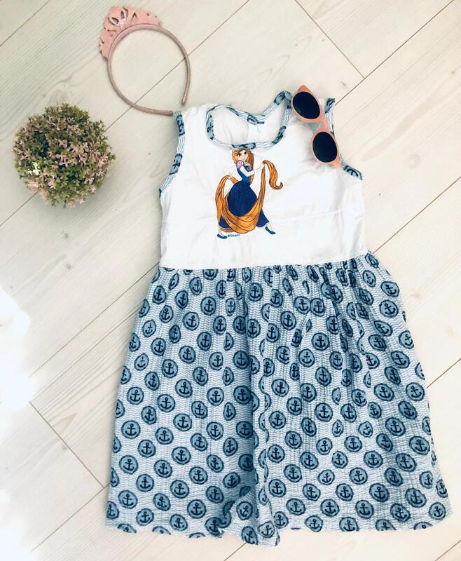 Dieser Schnitt und Nähanleitung beinhaltet ein wunderschönes Sommerliches Kleid für kleine Prinzessinen. Es ist für nicht dehnbare Stoffe konstruiert und hat eine Knopfleiste am Rückteil.