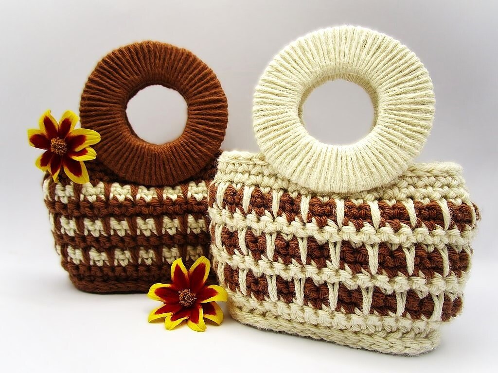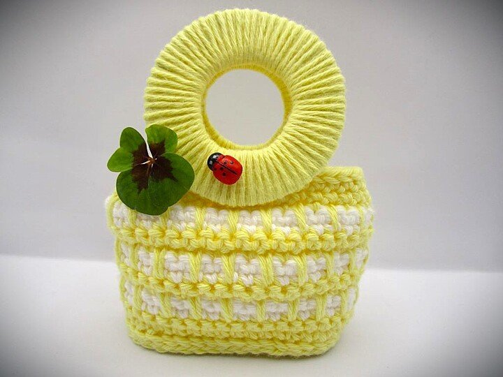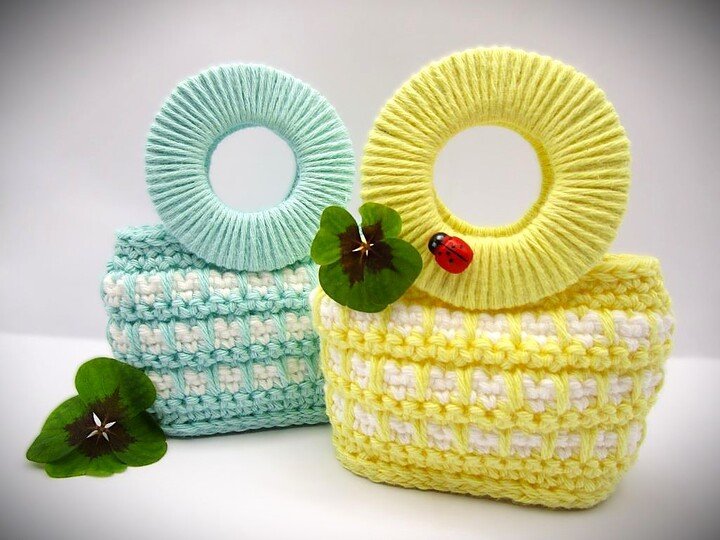 Die Henkel werden nicht gehäkelt, sondern mit Garn umwickelt. Das erfordert etwas Geduld, ist aber eine sehr einfache Technik.