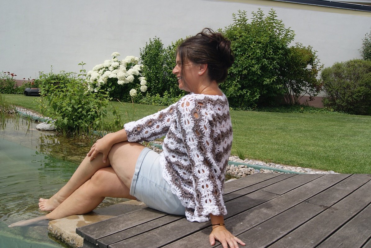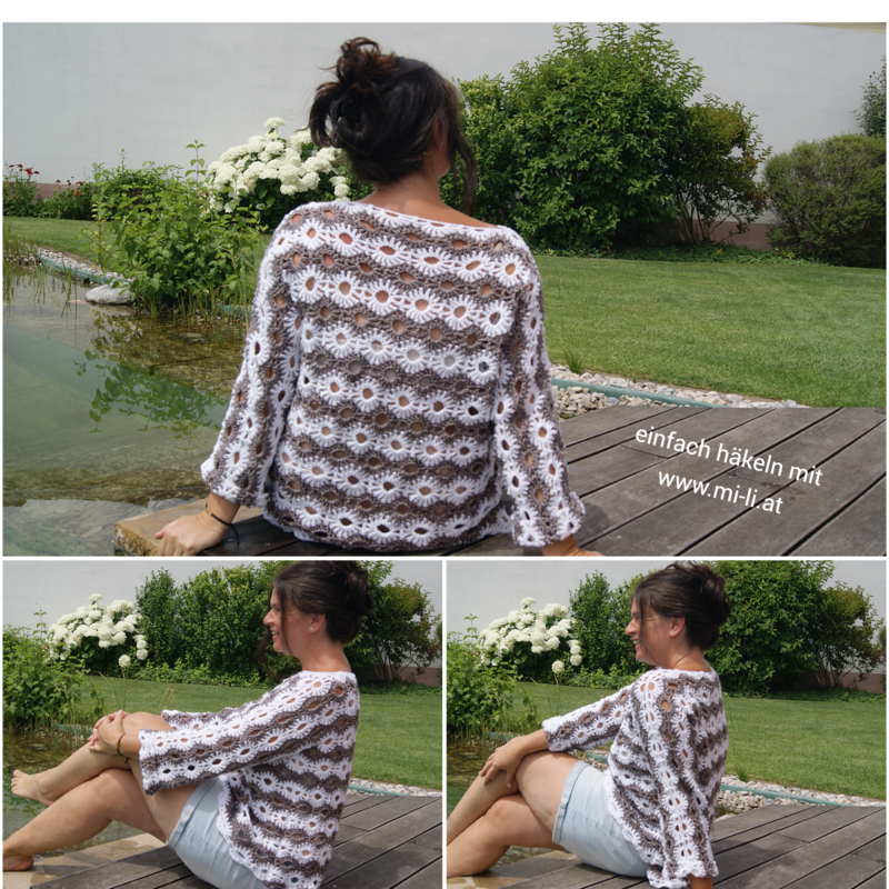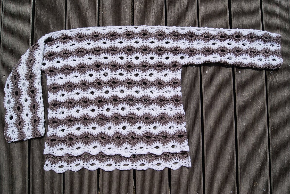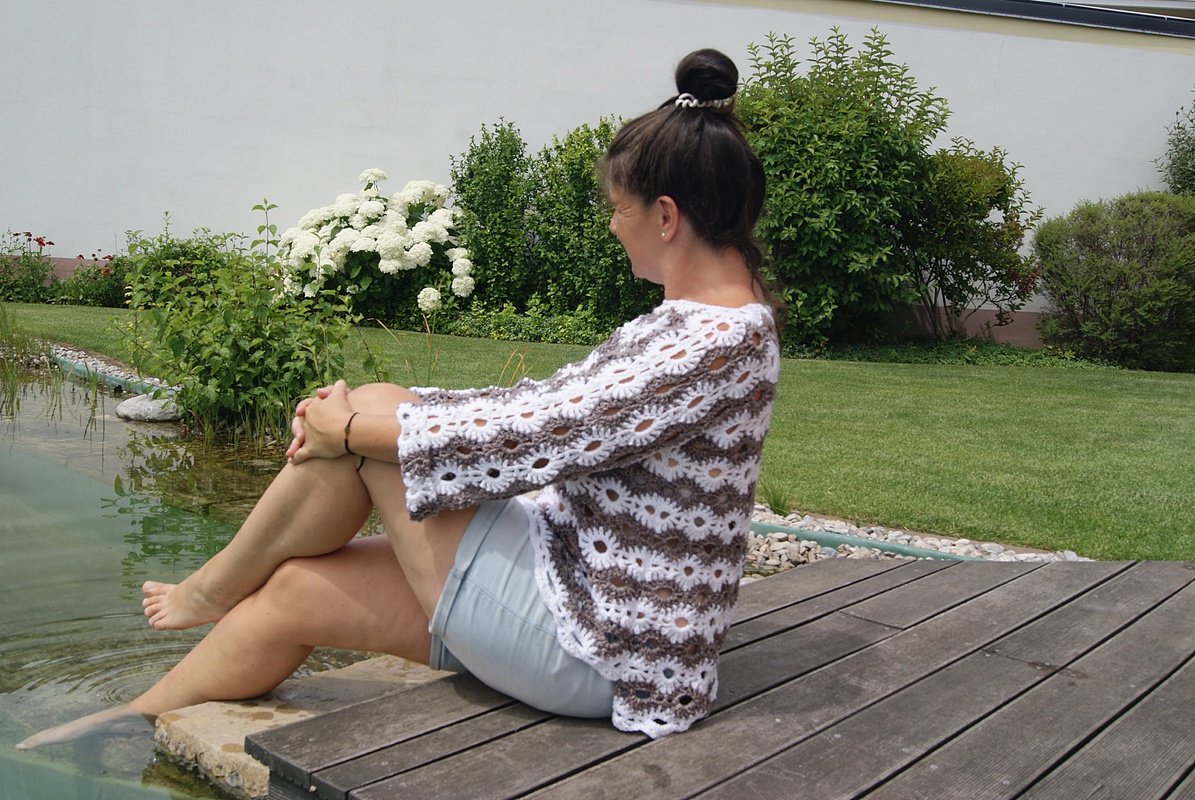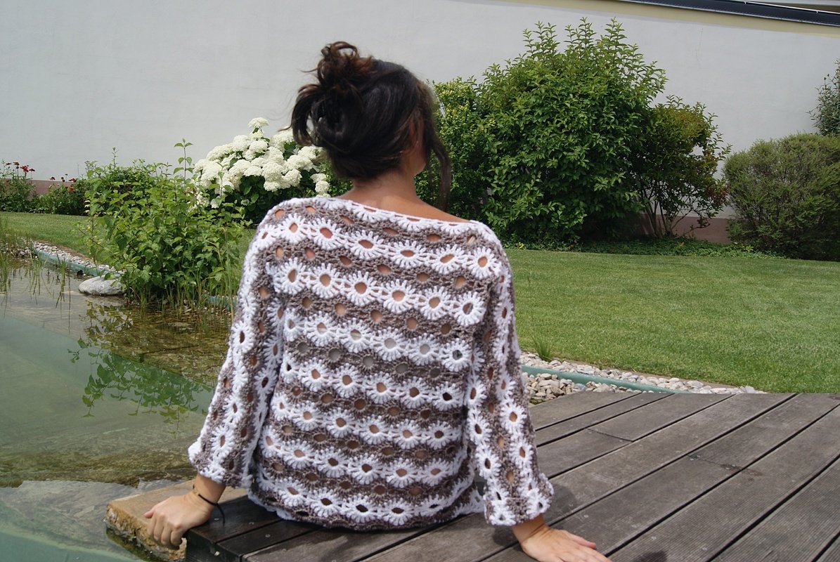 Bequemer, sommerlicher Pulli mit wunderschönen Details in Oversize-Optik passt perfekt in die warme Jahreszeit und ist ein garantierter Hingucker! Flott gehäkelt und auch etwas länger als Sommerkleidchen tragbar, kann man sich bald darauf freuen, ihn auszuführen!