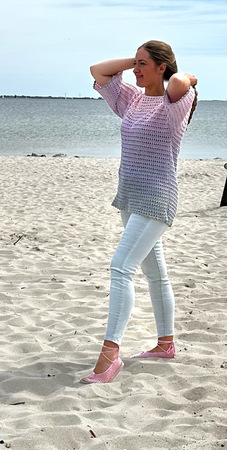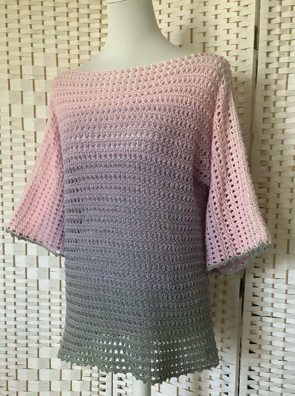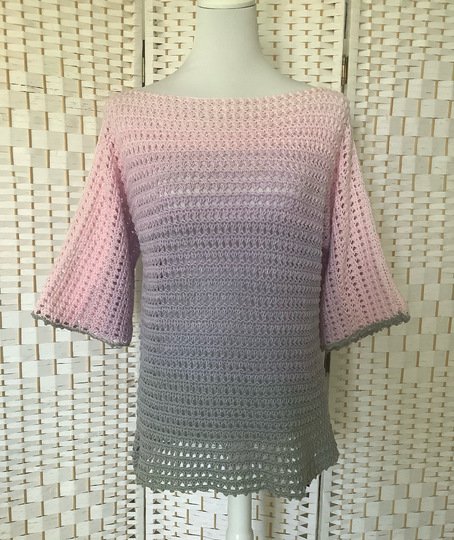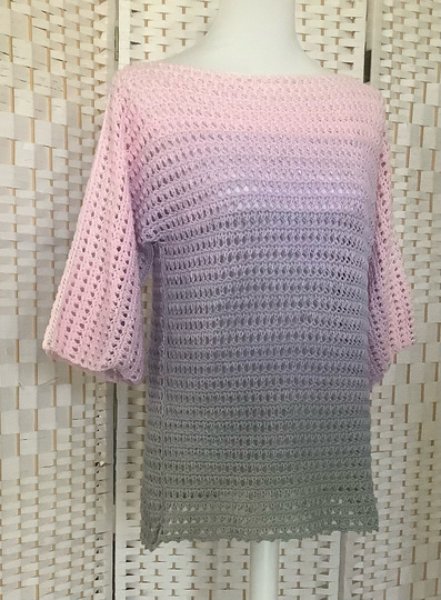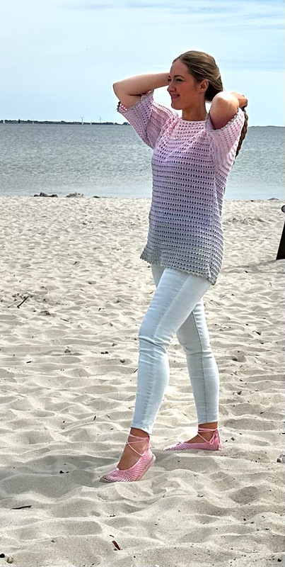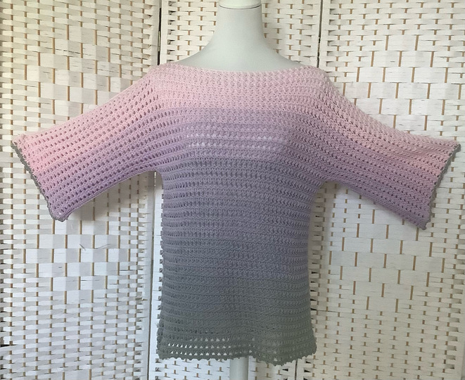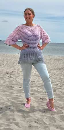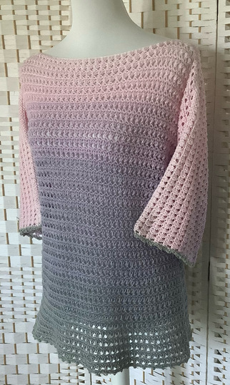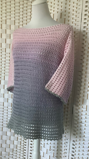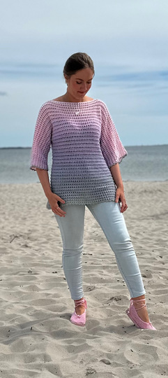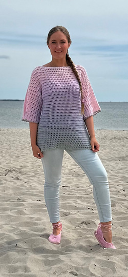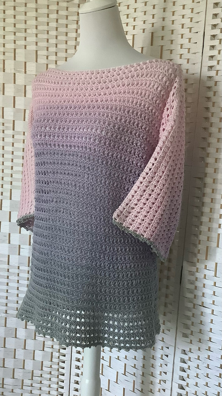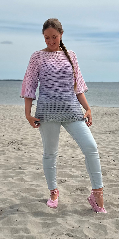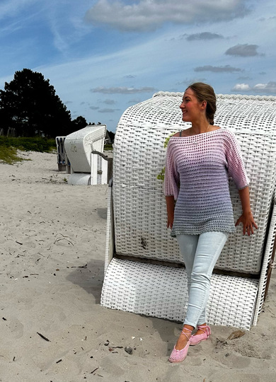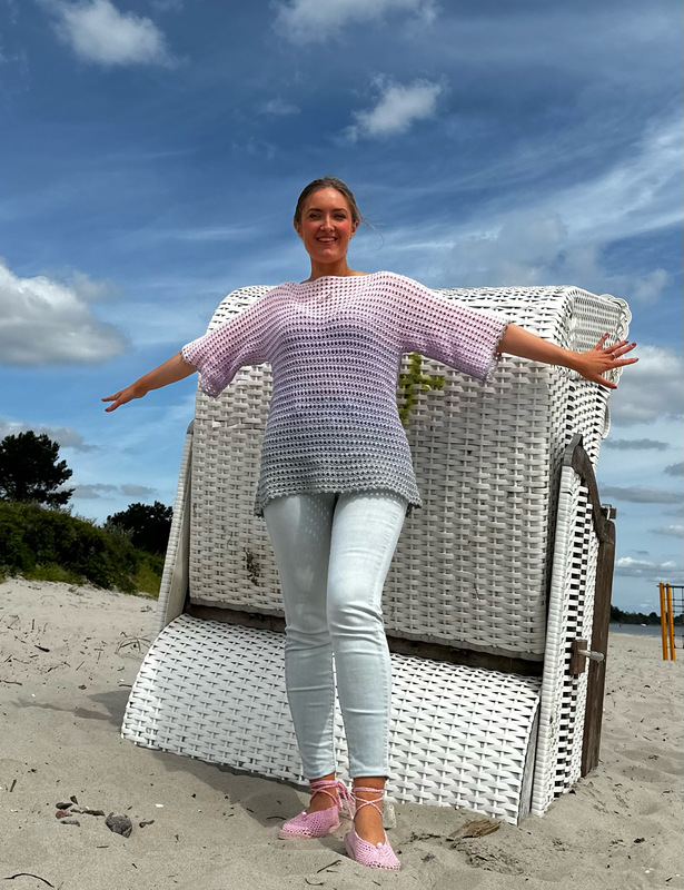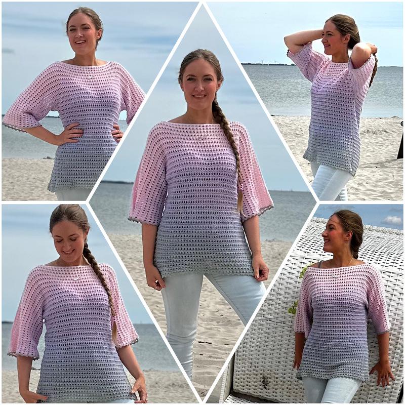 Der Pulli wird von oben nach unten gehäkelt aus zwei gleichen Teilen. Vom Crop Top bis zum langen Kleid ist alles möglich.