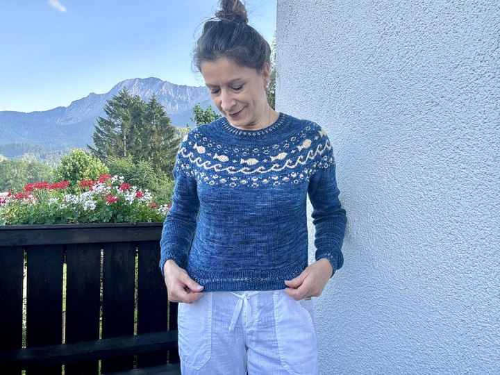 Für dieses Modell solltest Du solide Grundkenntnisse im Stricken haben und nach einer gut strukturierten schriftlichen Anleitung stricken können. Alles ist darin sehr genau Schritt für Schritt erklärt. Es ist von Vorteil, wenn Du schon mal Colorwork bzw. einen Rundpassenpullover von oben nach unten gestrickt hast (jedoch keine zwingende Voraussetzung). Zu wichtigen Techniken und besonderen Maschen gibt es in der Anleitung detaillierte Erklärungen sowie Videolinks zu YouTube.