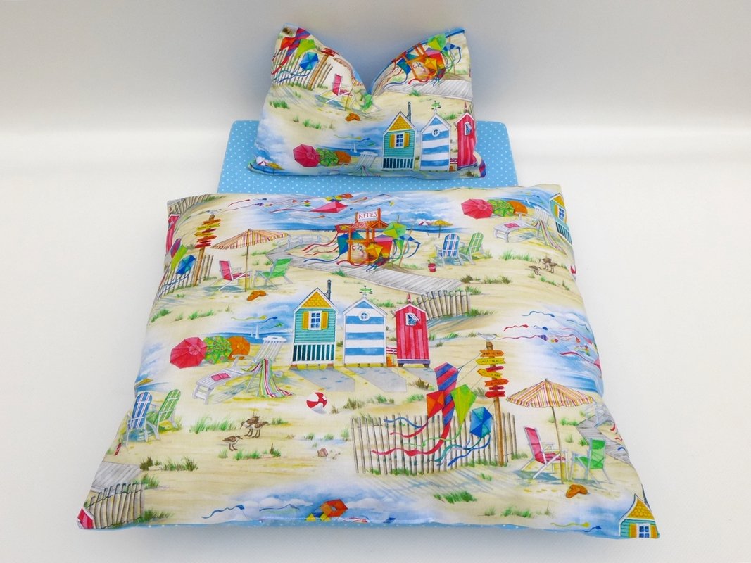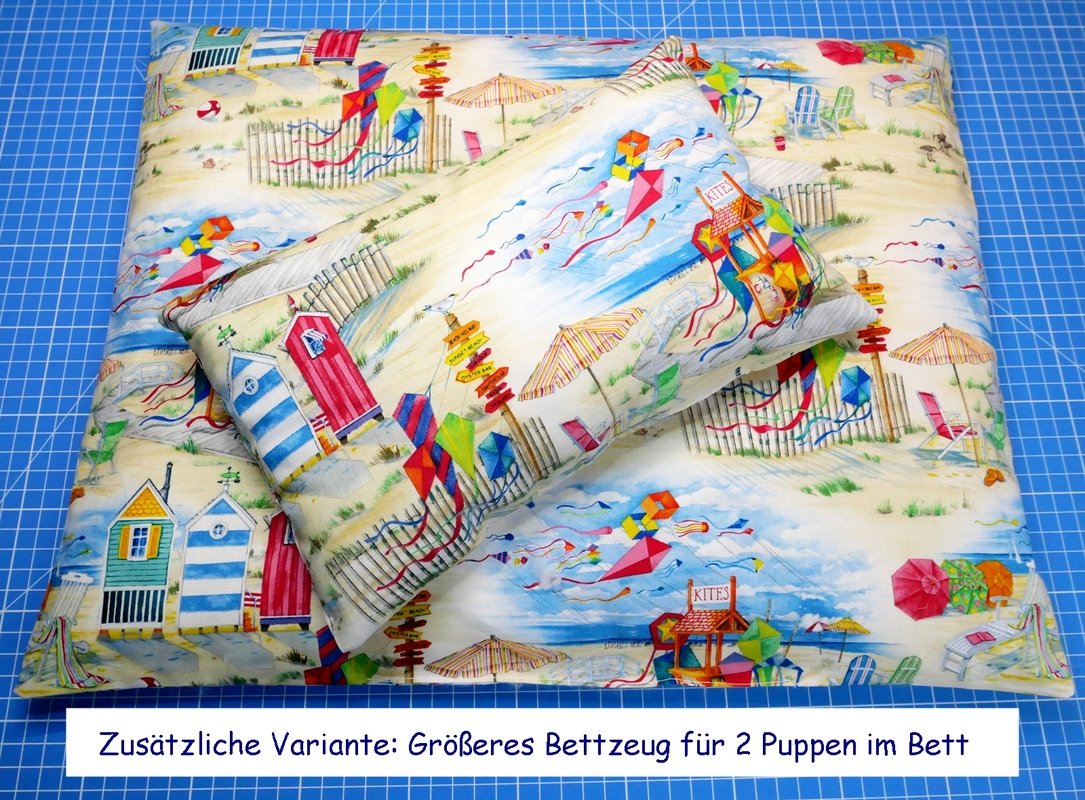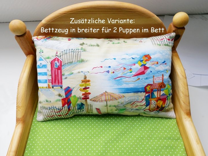 Man kann auch kleine und große Kissen nähen und diese im Bettchen kombinieren. Schaut Euch gerne meine Beispielbilder an und lasst Euch ins Puppenland entführen.