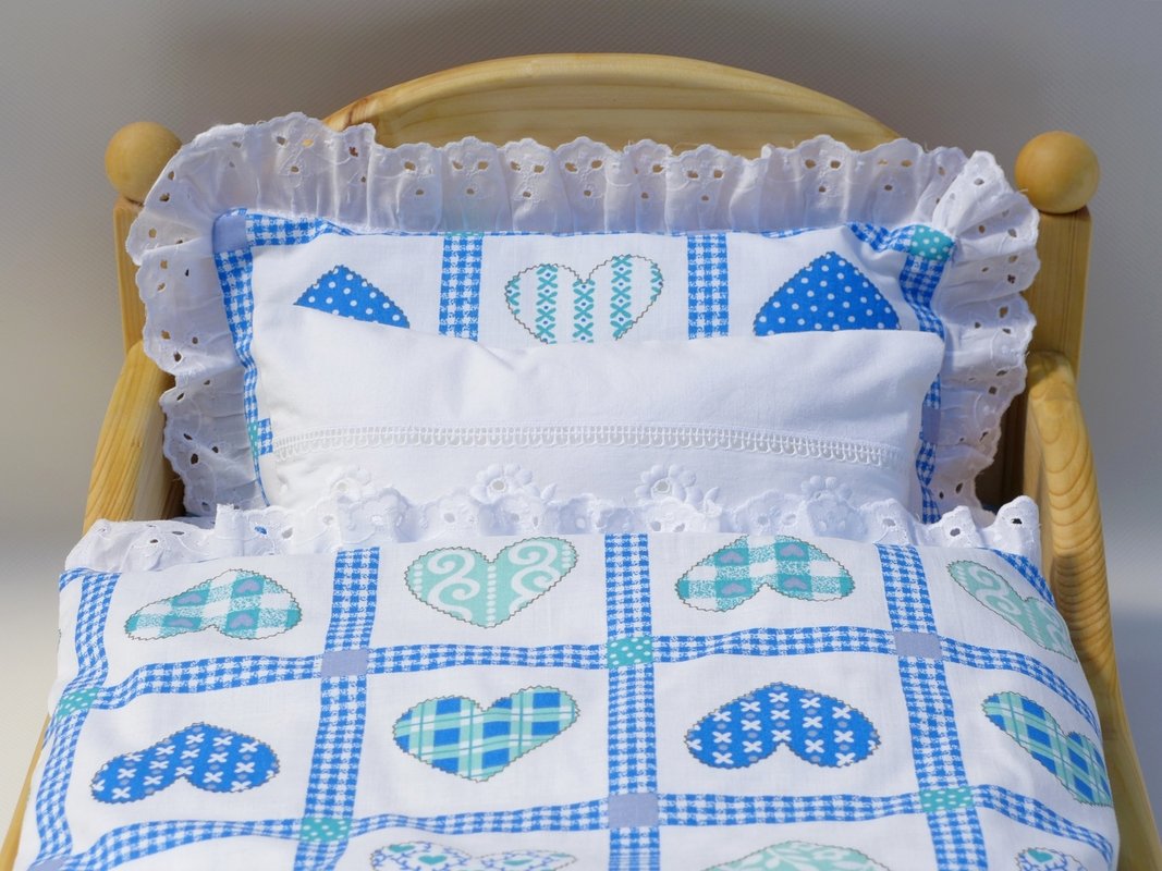 Jedes Puppenbett ist etwas ganz Besonderes und wird wohl jahrelang liebevoll von den Puppenmuttis bespielt. Deshalb verdient es die schönste Bettwäsche, die wir uns vorstellen können. Diese könnt Ihr selber aus ein paar Stoffresten nähen.