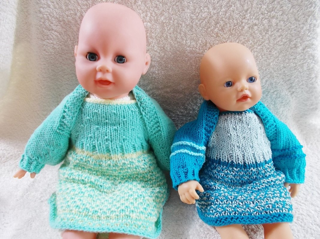 Meine beiden Enkelmädchen, die ihre Ärmelschals sehr lieben, werden nun auch ihre Puppen damit einkleiden können. Welch eine Freude!