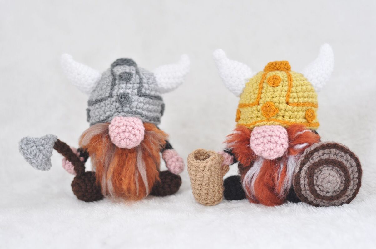 Entdecke die detaillierte Häkelanleitung für einen bezaubernden Wikinger Wichtel, komplett mit Axt, Krug, Horn und Schild! Dieses charmante Projekt ist perfekt für Häkelbegeisterte aller Erfahrungsstufen und lässt sich schnell und einfach aus Wollresten fertigen.