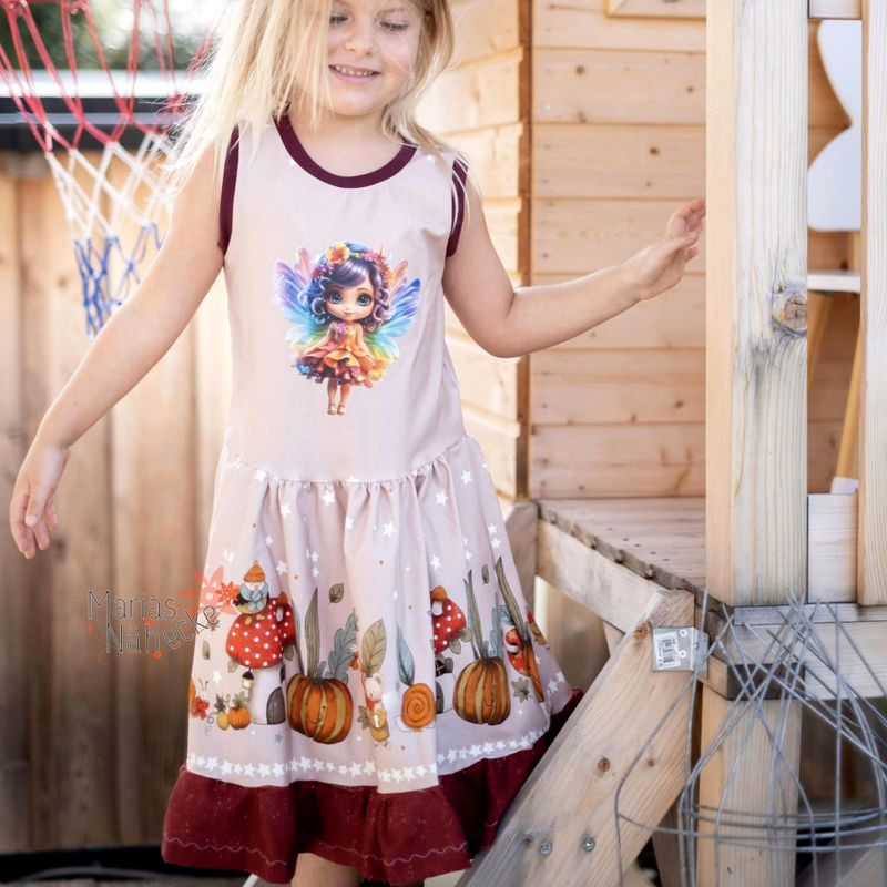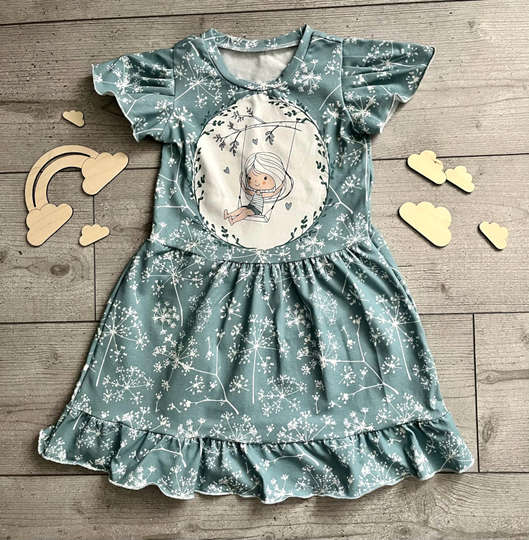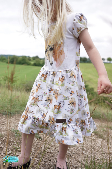 Kythala gibt es mit zwei verschiedenen kurzen Puffärmeln, aber auch das besondere Kappärmelchen ist wieder dabei, nun mit Rüsche statt Volant. Die schlichten kurzen Ärmel kannst du normal säumen oder wahlweise mit einer Saumrüsche aufhübschen. Damit das Kleid auch in den kühleren Jahreszeiten getragen werden kann, sind zwei lange Ärmel dabei – einer normal geschnitten, der andere als Puffärmel mit Gummiband im Saum. Und für die besonders heißen Tage nähst du Kythala einfach ärmellos, nach Wunsch mit süßen kleinen Flügelchen!