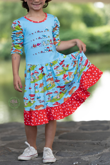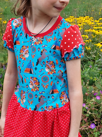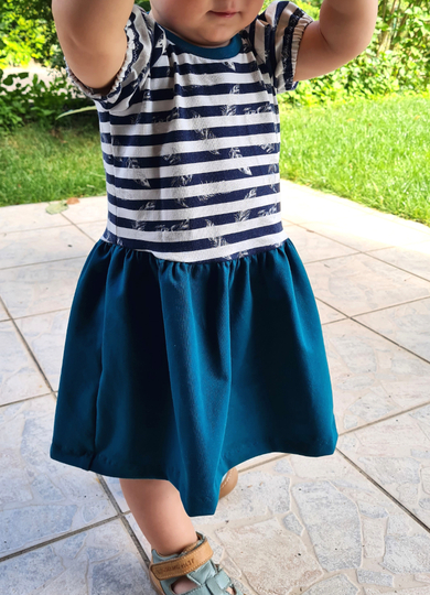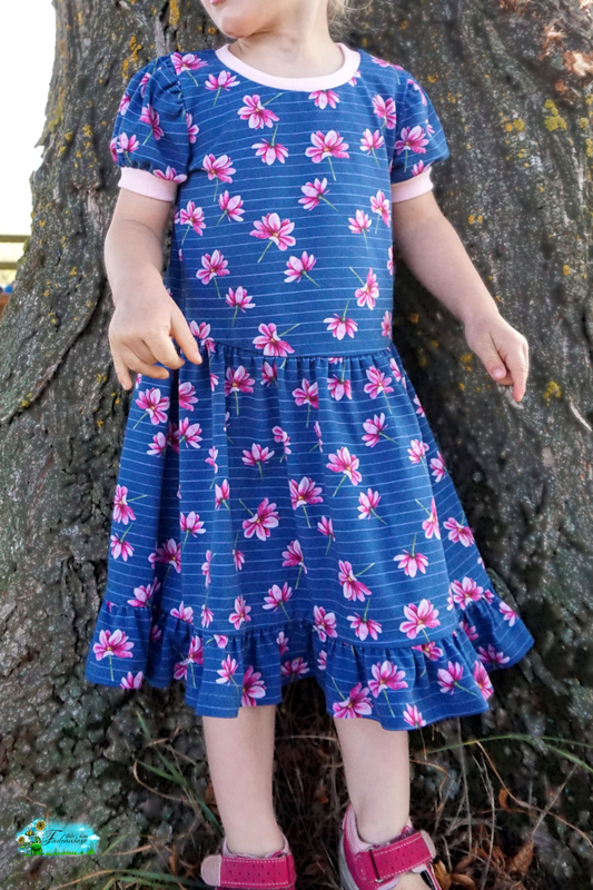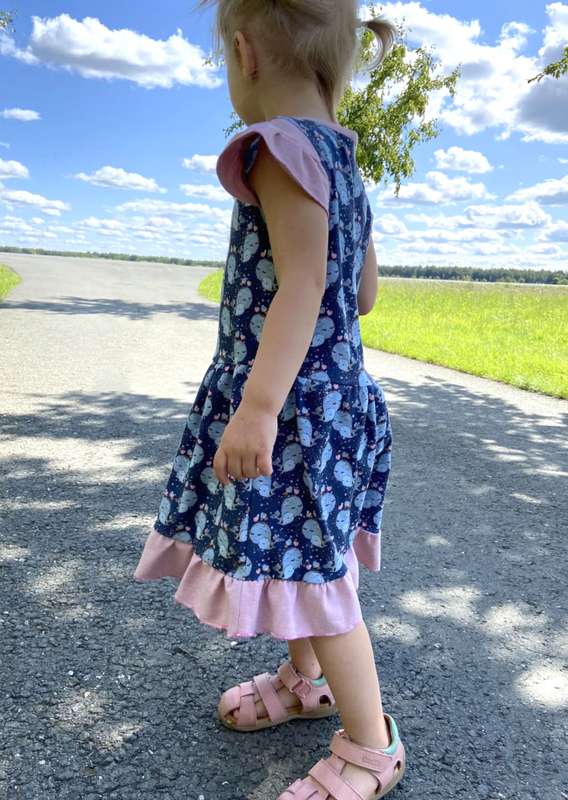 Das Kräuseln der Teile erfordert natürlich ein bisschen mehr Zeit, aber das bezaubernde Ergebnis ist es wert! Kythala ist im Schulterbereich normal bis schmal geschnitten und fällt nach unten etwas lockerer. Anders als bei Kymavi haben Vorder- und Rückenteil hier die Teilungslinie auf derselben Höhe, so dass du für den Rock nur ein Schnittteil benötigst. Dank der gut bebilderten Anleitung ist Kythala leicht zu nähen und somit auch für Anfänger gut geeignet.