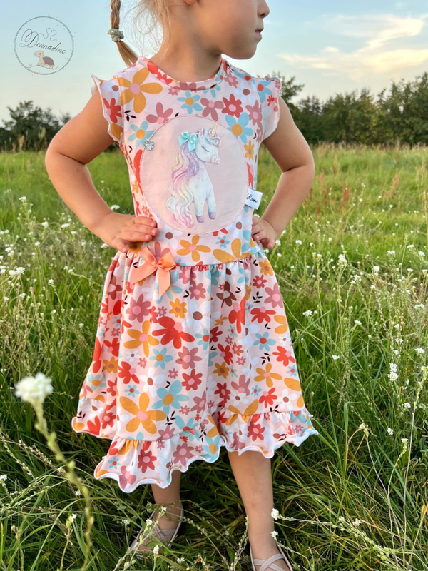Den Rock kannst du einfach oder doppellagig nähen und dabei zwischen zwei Längen und zwei Breiten wählen. Doppelte Rockteile erlauben den Einsatz spezieller Stoffe wie z.B. Spitze als obere Lage. An das gekürzte Rockteil kann auch eine weitere Rüsche gesetzt werden. Das Kleid wirkt edel, wenn du es aus einem einzigen Stoff nähst, besonders, wenn er einfarbig oder nur dezent gemustert ist. Mit mehreren Stoffen kannst du es dagegen fröhlich-bunt oder verspielt gestalten.