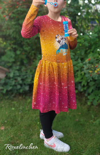Das Schnittmuster deckt die Einzelgrößen von 74 bis 164 ab, ist also für Kinder von ca. 9 Monaten bis ins Teeniealter geeignet.