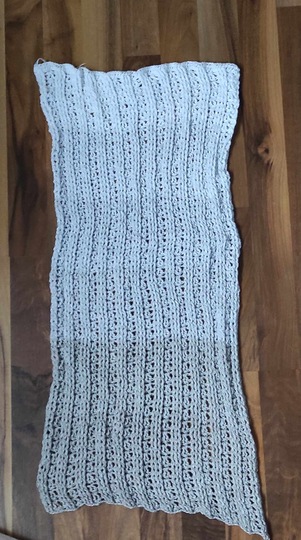 Der Materialverbrauch ist abhängig von der Garnstärke, der Nadelstärke und dem Häkelstil: und natürlich auch von der Breite/Länge.