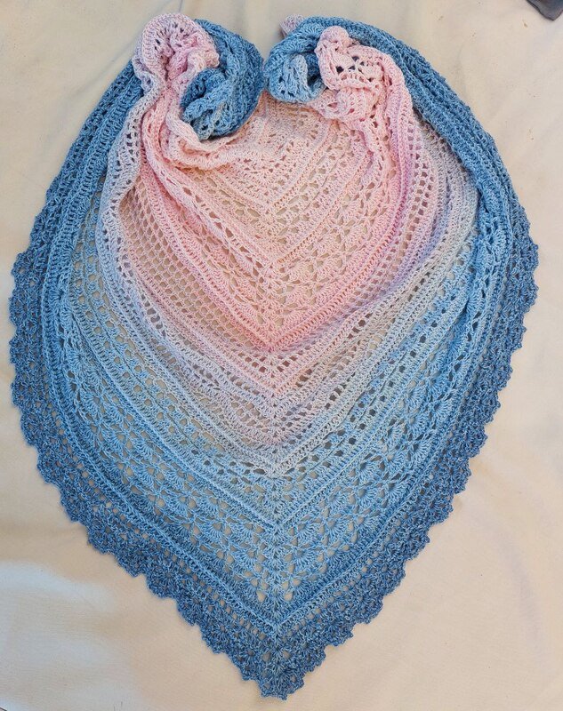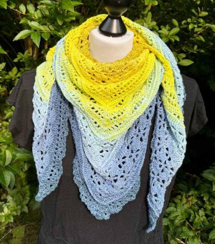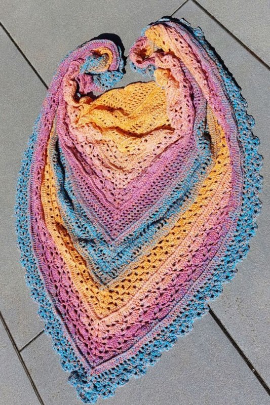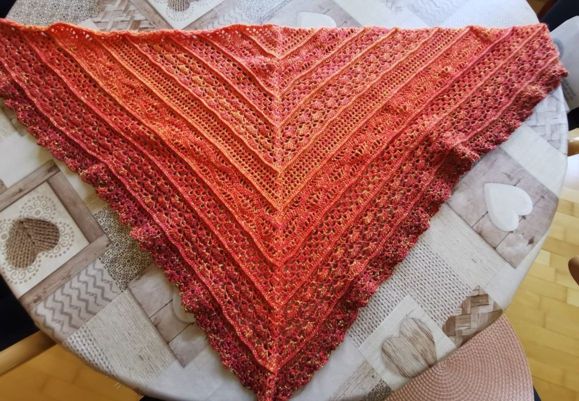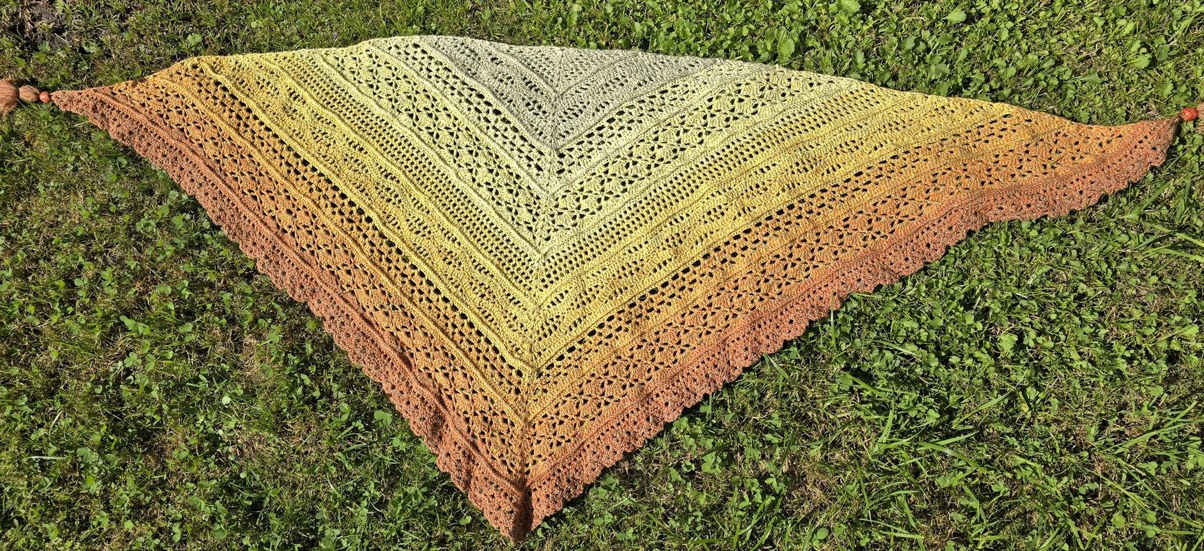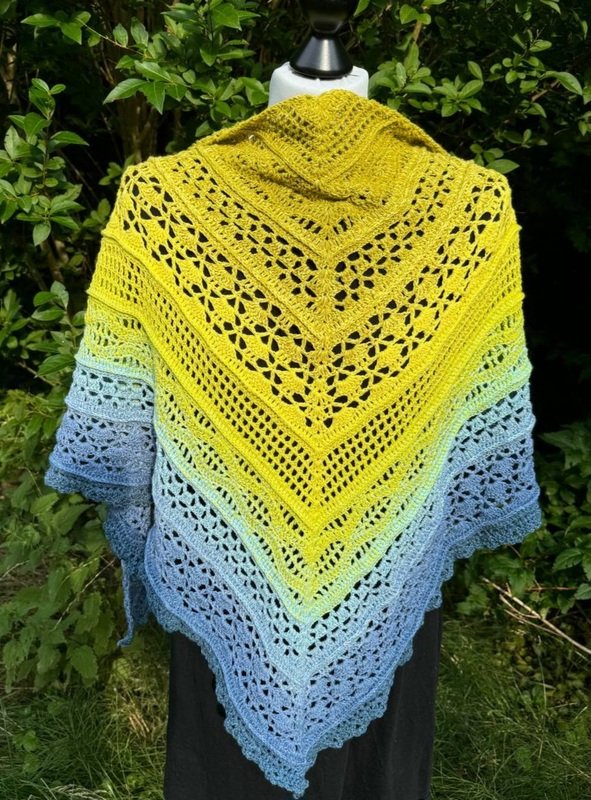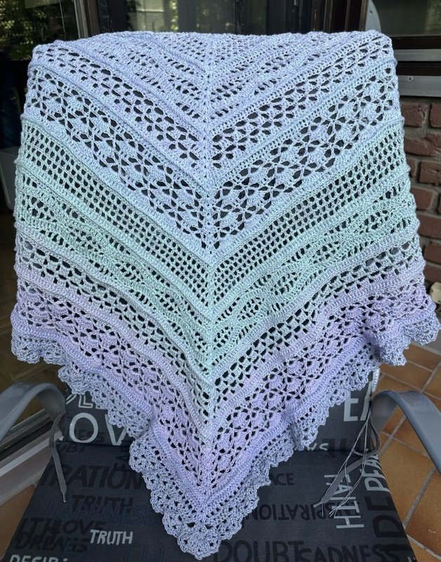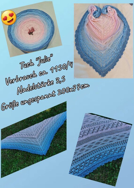 Andere Garne oder Garnstärken können nach Belieben verarbeitet werden - doch hier kann keine Angabe zum endgültigen Verbrauch oder der Größe des Tuchs gemacht werden.