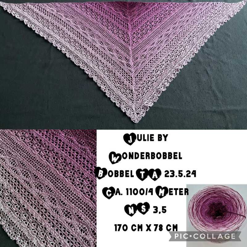 Wir haben mehrere Tücher getestet und haben mit unterschiedlichen Bobbel (50 % Baumwolle & 50 % Polyacryl) sowie Modal 3 bis 4 fädig verschiedene Grössen erreicht :