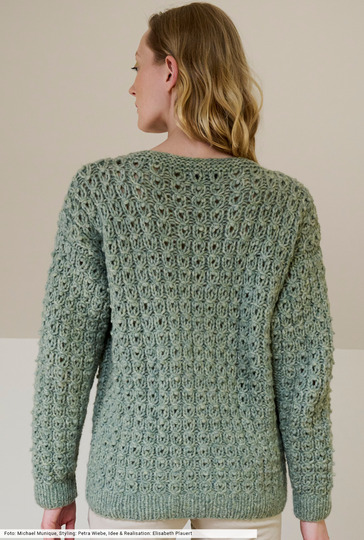 Weg vom Spektakel, hin zu tragbaren Maschen, die mit ihrer subtilen Raffinesse für Aufsehen sorgen – so ungefähr könnte man den Charakter dieses tollen Pullis in freundlichem Graugrün beschreiben. Seine allover angelegten Ajourstrukturen stricken sich nach wenigen Reihen wie von selbst und das griffige Schurwoll-Mischgarn avanciert zum kuschelweichen Indoor-Highlight. Mit Nadel Nummer Sieben entsteht hier ein Lieblingsstück, das länger als eine Saison begeistert.