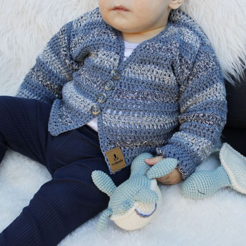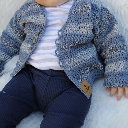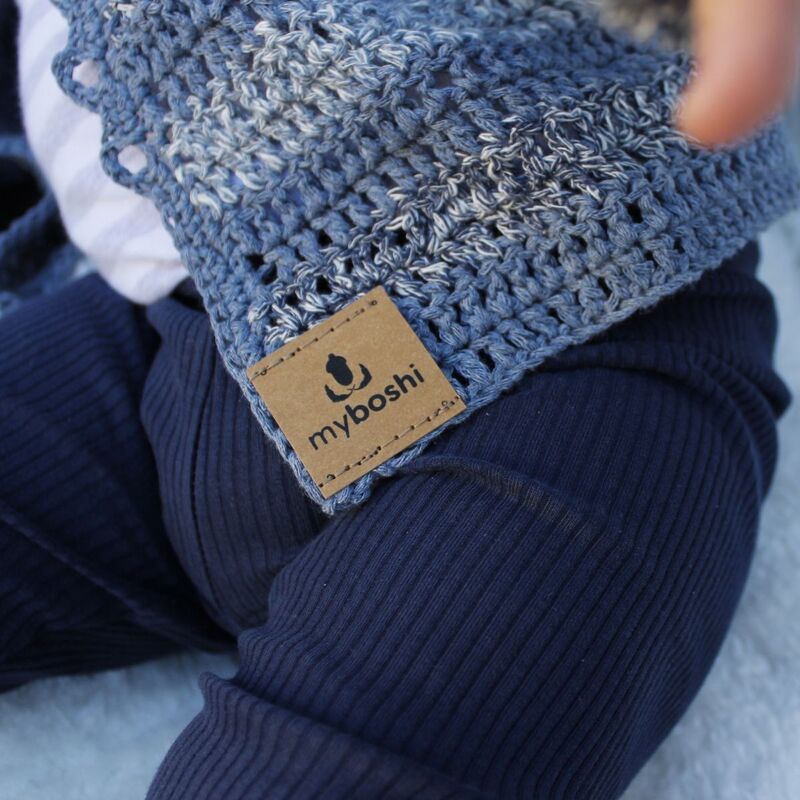 Die Babyjacke Ishikari Denim aus unserem veganen Recyclinggarn myboshi Denim sieht nicht nur super sieht aus – sie ist auch einfach gehäkelt und eignet sich perfekt als leichte Jacke für die kühleren Tage. Unser Baumwollgarn myboshi Denim ist nicht nur strapazierfähig, es ist sehr atmungsaktiv und deine fertige Jacke lässt sich bei 30°C waschen.