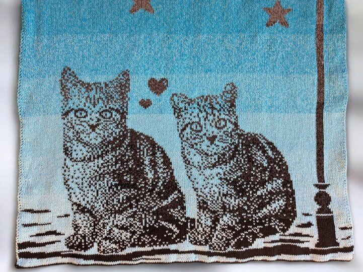 Diese beiden süßen Kätzchen sind doch ein wundervolles Motiv für eine Baby- oder Kinderdecke – es lädt geradezu ein, sich darin einzukuscheln und schön zu träumen. Die Größe ist so gewählt, dass die Decke nicht nur im Babyalter, sondern auch noch einige Jahre weiter verwendet werden kann. Und selbst wenn das Kind daraus „herausgewachsen“ ist, wird sie bestimmt ein Leben lang in Ehren gehalten werden.