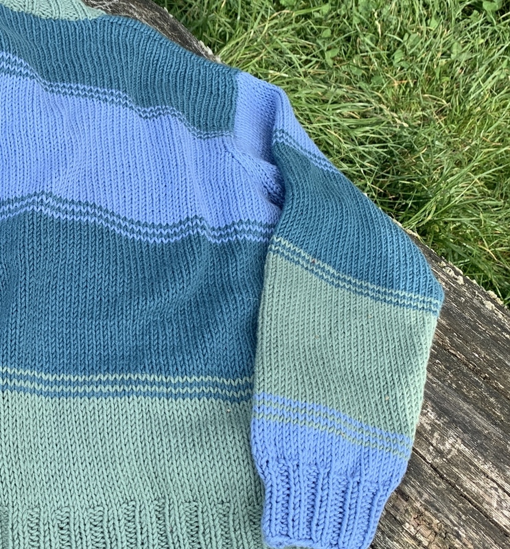 Die Kinderjacke wird in einem Stück von unten nach oben bis zu den Armausschnitten gestrickt. Nach dem Erreichen der Armausschnitte teilst du die Arbeit in Vorder- und Rückenteil auf und strickst diese Teile separat weiter.