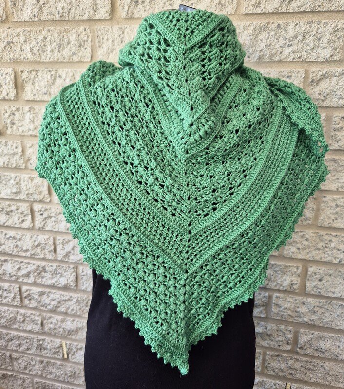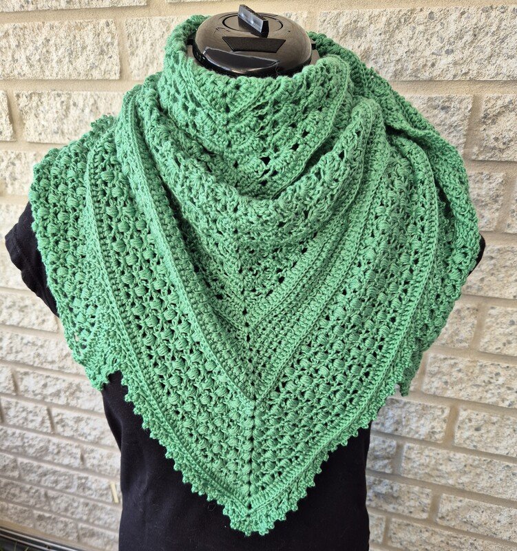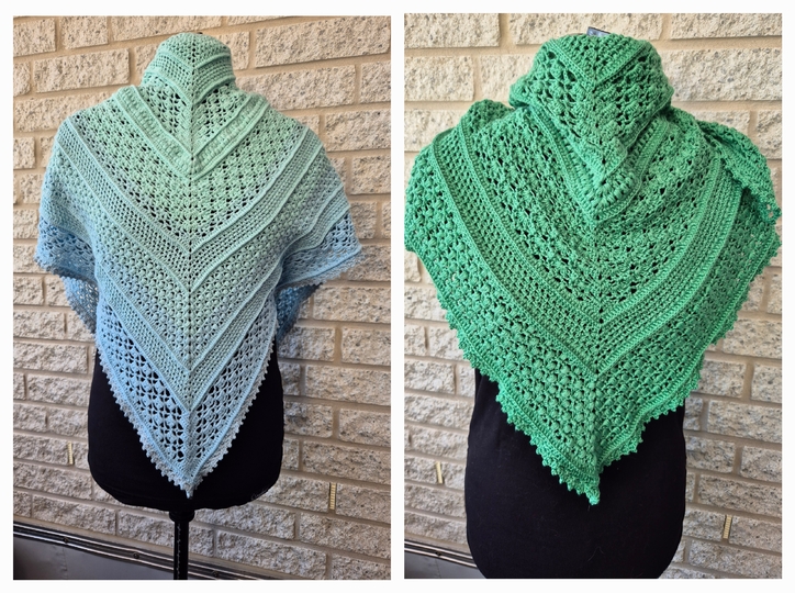 Rutnät kann in 2 Größen als klassisches Dreieckstuch nachgearbeitet werden.