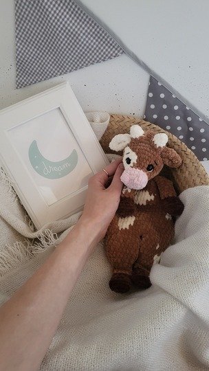 Die Häkelanleitung Schnuffeltuch Kalb "Milli" ist ausschließlich in Deutsch.