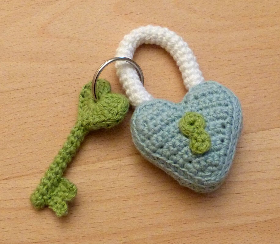 Kennst du die "Liebesschlösser", die man an vielen Brücken findet? Wenn du das "Symbol ewiger Liebe" gerne immer bei dir haben oder deinem/deiner Liebsten schenken möchtest, dann häkel dir doch einfach eins in deinen Lieblingsfarben als Schlüsselanhänger oder Taschenbaumler. Der Anhänger besteht aus einem Vorhängeschloss in Herzform und dem dazu passenden Schlüssel mit herzförmigem Kopf, die auch einzeln verwendet werden können.