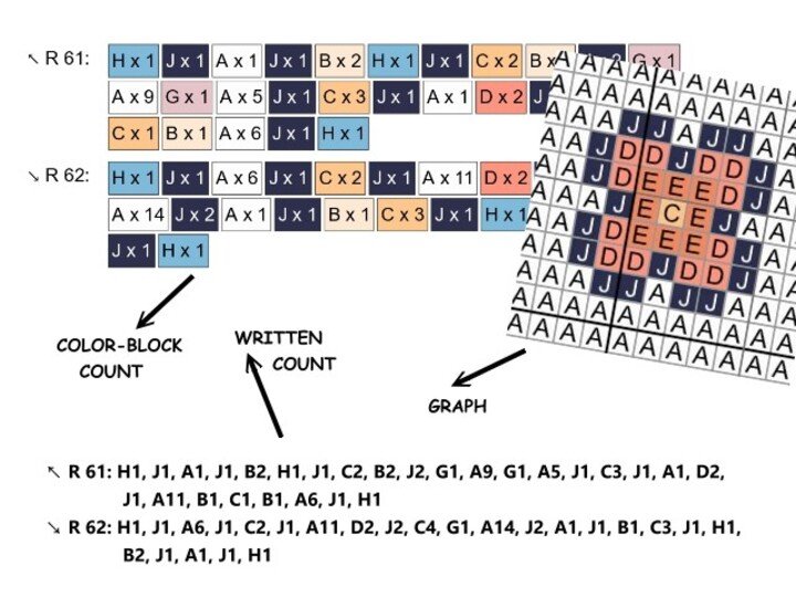 -farbige Zahlen-Blöcke für jede Zeile für C2C-Technik