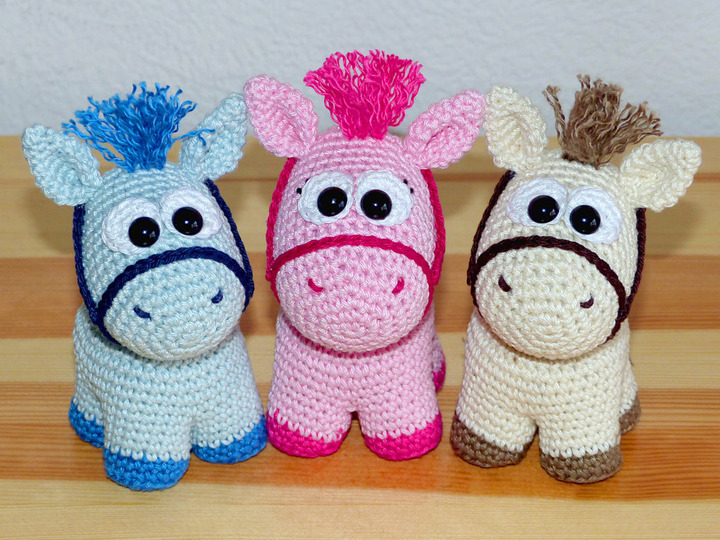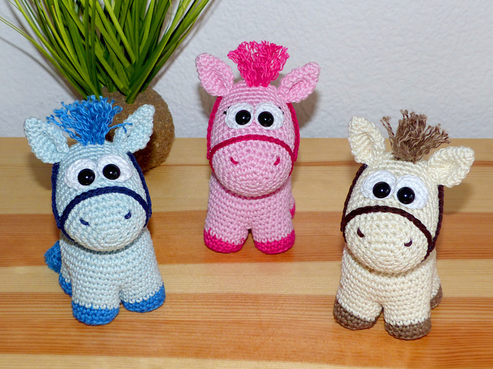 Diese niedlichen Pferdchen sind das ideale Geschenk für jeden Pferdeliebhaber. Ob zum Geburtstag, zur Einschulung oder zu Weihnachten – die kleinen Pferdchen werden die Herzen der Beschenkten im Sturm erobern. Häkelt die süßen Pferde in den Lieblingsfarben von euch oder euren Liebsten und bringt damit viele Augen zum Strahlen. Die Pferdchen sind schnell gehäkelt und eignen sich perfekt als liebevolles Mitbringsel für jeden Pferdenarren.