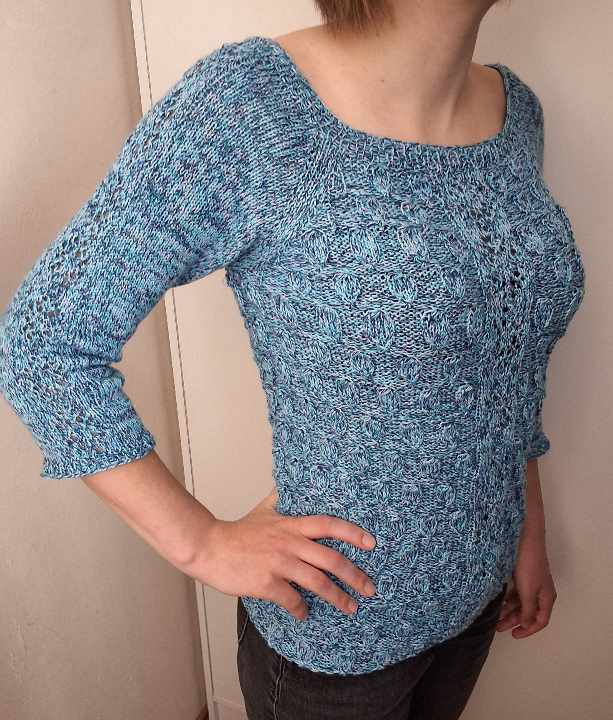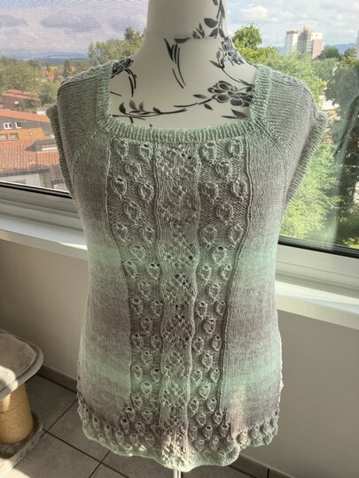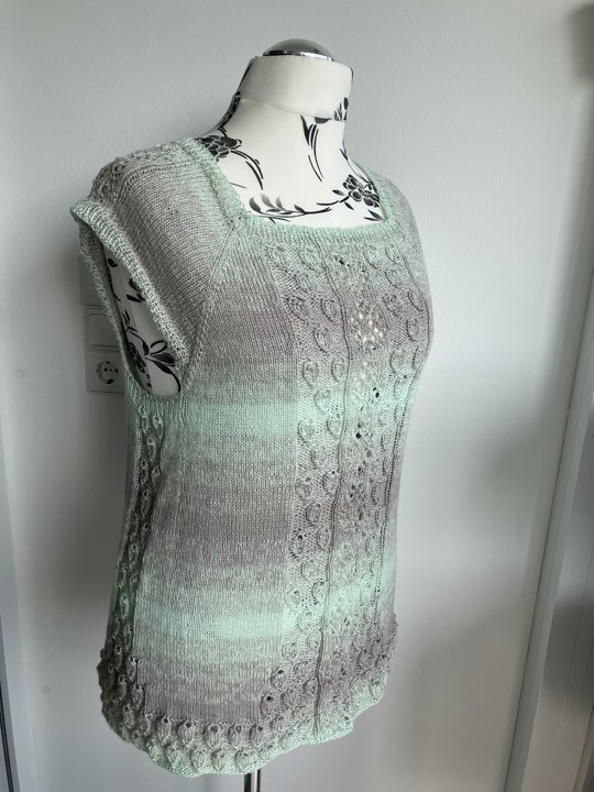 Solltest Du dieses Shirt mit Ärmel oder gar langem Arm stricken wollen, benötigst Du noch sog. Ärmelbobbel (oder zusätzliches Garn) mit je ca. 200-250 Metern LL (4-fädig).