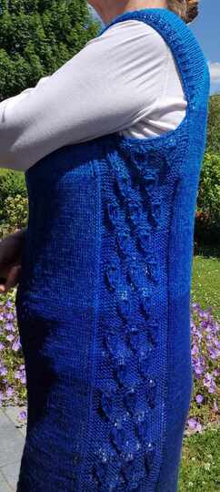 Die Größe ist variabel und wird ähnlich wie beim RVO beim Stricken individuell angepasst. Daher kann die Anleitung für alle Damengrößen von XS bis 5XLund größer heran gezogen werden.
