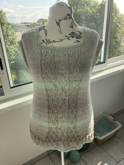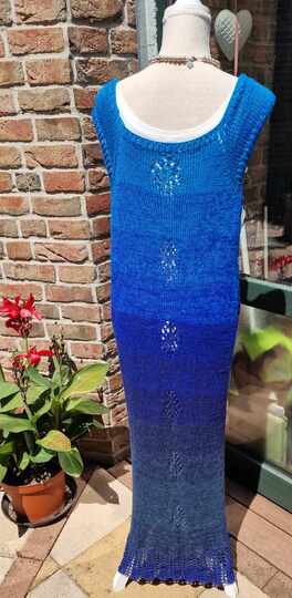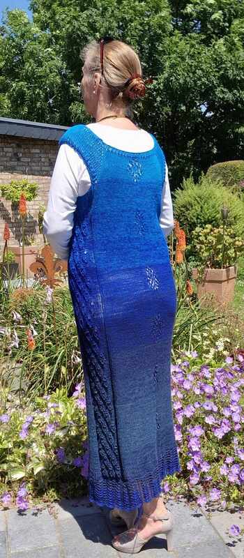 Das schöne an dieser Strickart ist, das es für alle Größen geeignet und auch erweiterbar ist. So ist aus meiner Idee nicht nur ein Shirt entstanden sondern auch ein schlichtes aber absolut ausgangsfähiges Sommerkleid!