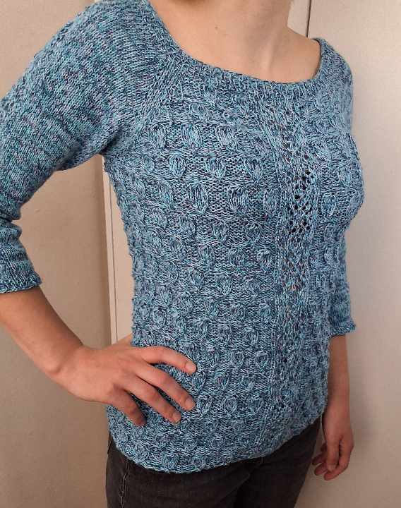 Die Raglan-Linien unterteilen das Shirt in Vorder- und Rückenteil (und beide Arme), so das schon beim stricken sehr schnell die Fortschritte sichtbar werden.