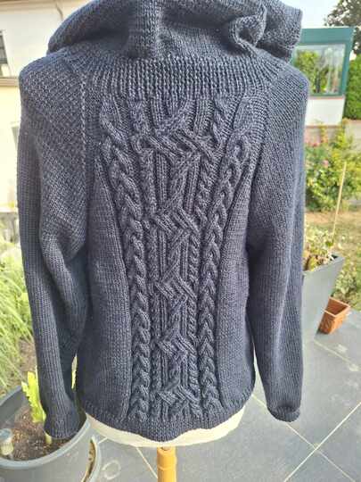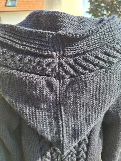 Weiterhin sind Strickschriften für die Kapuze, Vorderteile und den Rücken dabei, außerdem natürlich die zugehörigen Zeichenerklärungen. Die Strickschriften sind mit einem professionellen Programm erstellt, das teilweise sogar die kompletten Reihen ausschreibt. Außerdem ist die Anleitung von fleissigen Testbienchen auf Herz und Fehler getestet und für gut befunden worden.