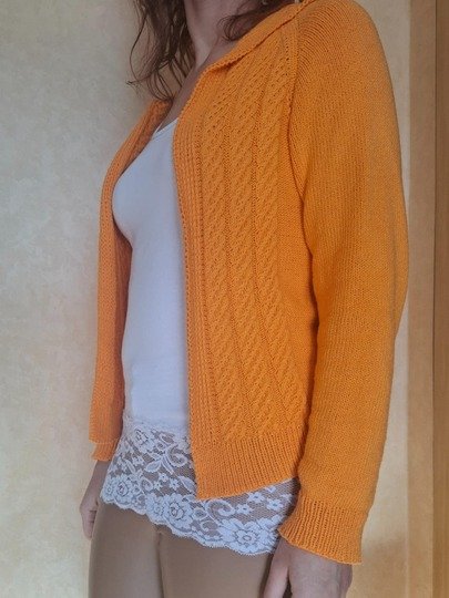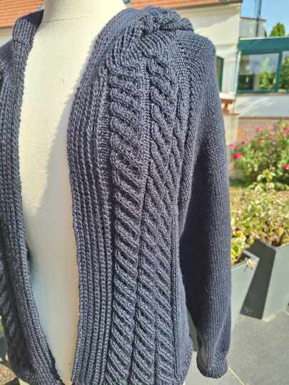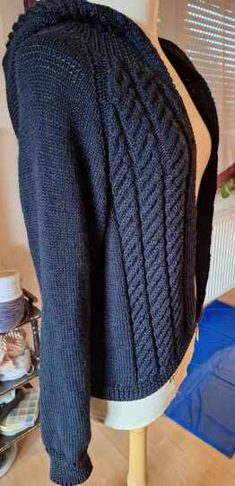 Diese Jacke kann von der kleinsten Damengröße bis hin zur größten Größe gestrickt werden.