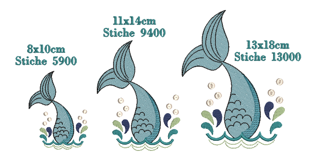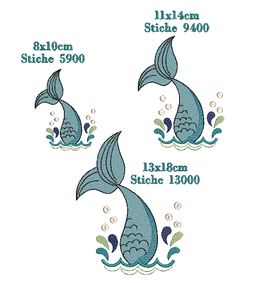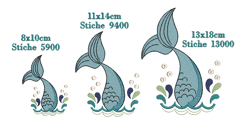 Nun habe ich hier für euch eine kleine Meerjungfrau, die gerade untertaucht und in die tiefen des Meeres verschwindet. Ein süßes Stickbild für Sommerkleidung, Turnbeutel, Taschen, Spardosen oder vieles mehr.