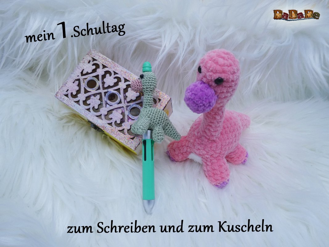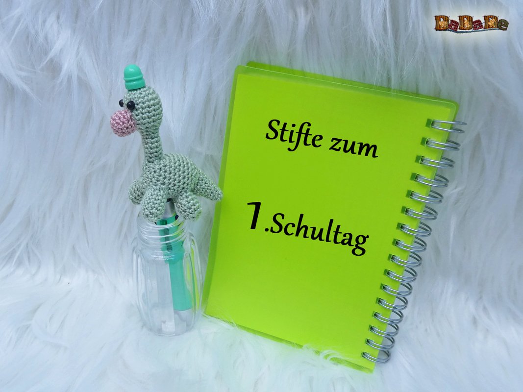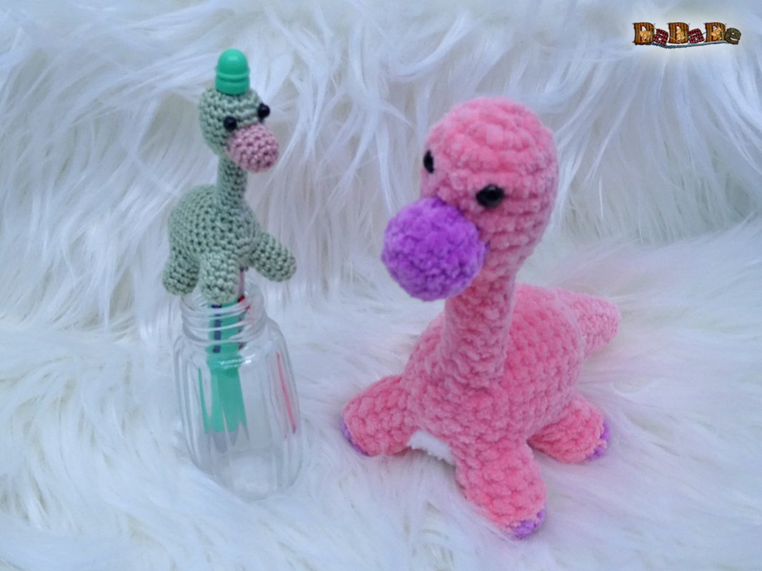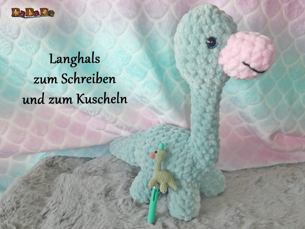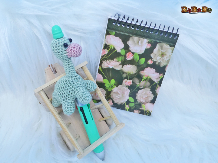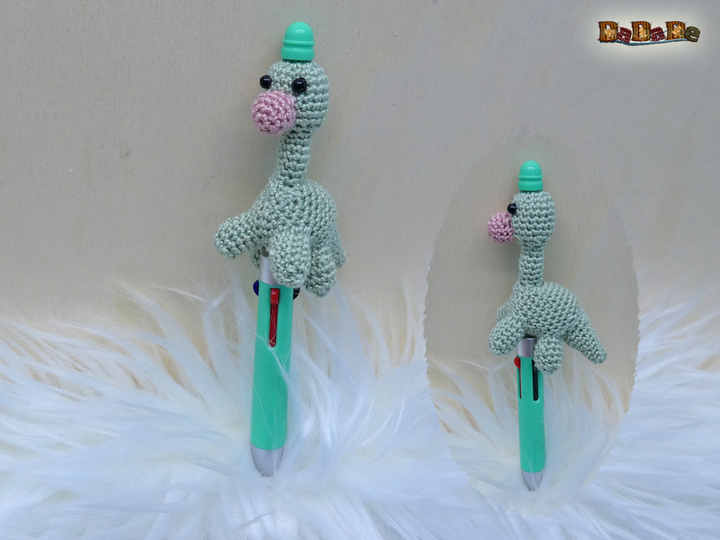 Sie kaufen hier die Häkelanleitung für diesen süßen Dino, der Langhals wurde designt für einen DIY-Kugelschreiber, deshalb ist er auch einfach gehalten, und für Anfänger geeignet.