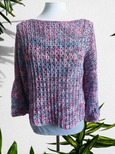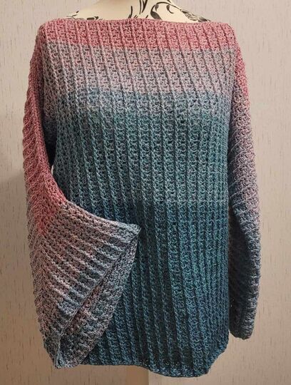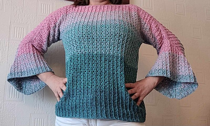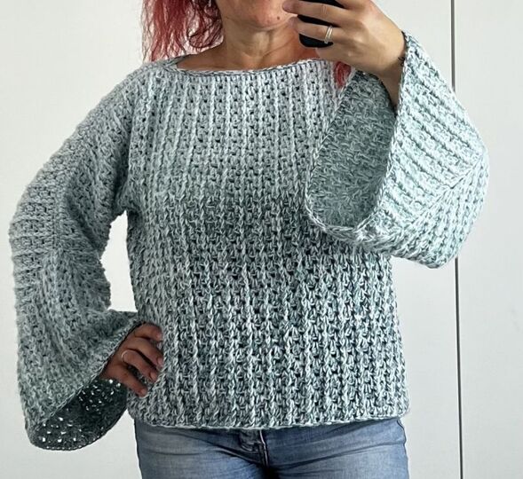 Der 1 Bobbel Pullover Smilla wird von oben nach unten in Runden gehäkelt.