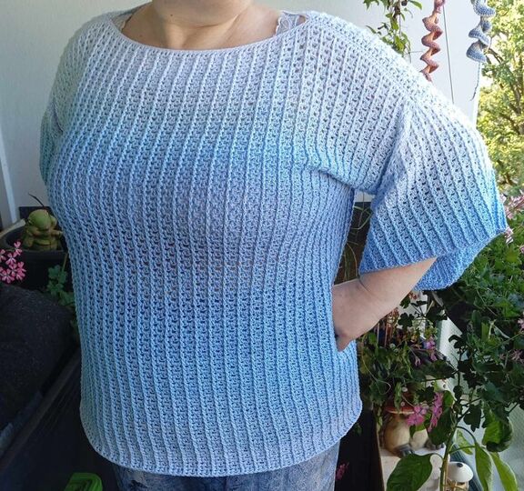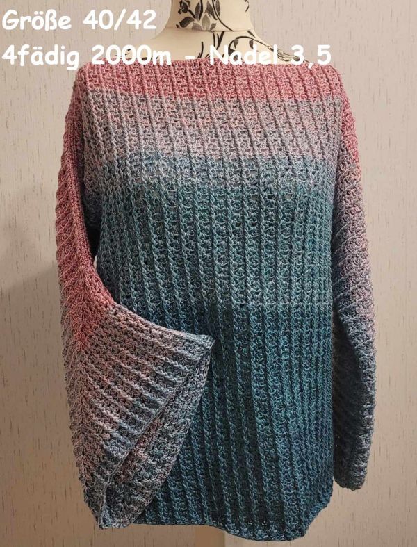 Smilla kann als Langarm oder Halbarm gehäkelt werden, je nach dem wie ihr den Anschlag macht, je kürzer der Anschlag, desto kürzer die Arme.