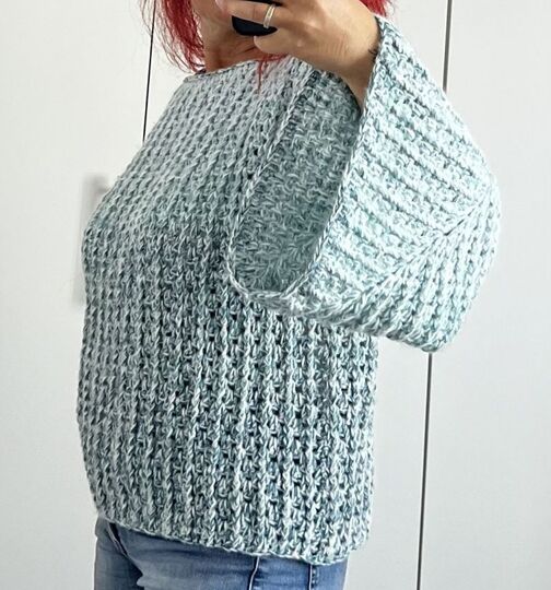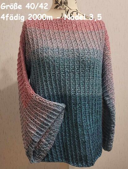 Es ist ein abgewandelter RVO Pullover bei dem keine Ärmelbobbel benötigt werden.