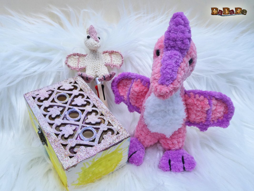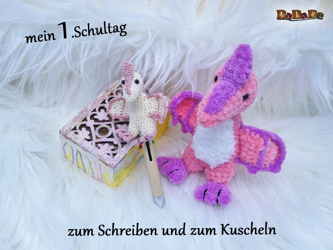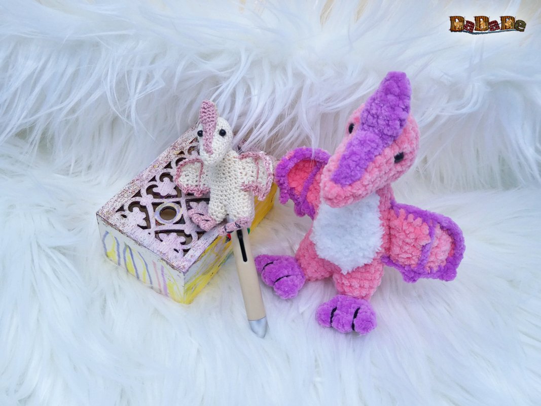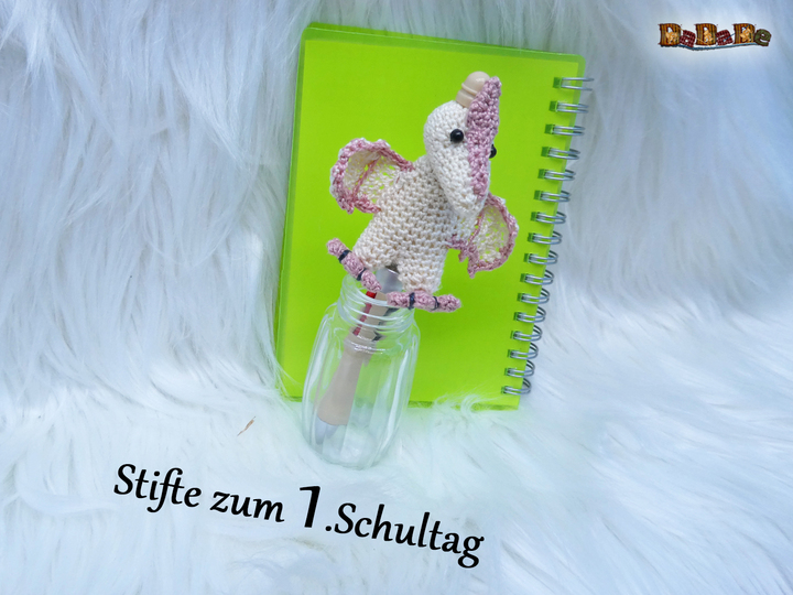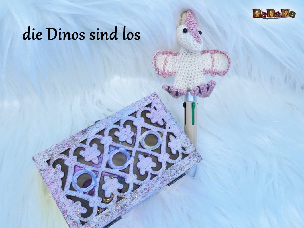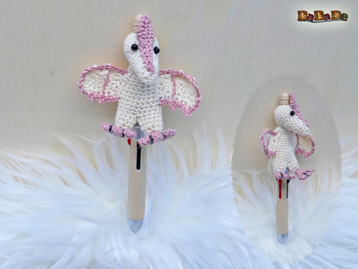 Sie kaufen hier die Häkelanleitung für diesen süßen Dino, der Flugsaurier wurde designt für einen DIY-Kugelschreiber, deshalb ist er auch einfach gehalten, und für Anfänger geeignet.