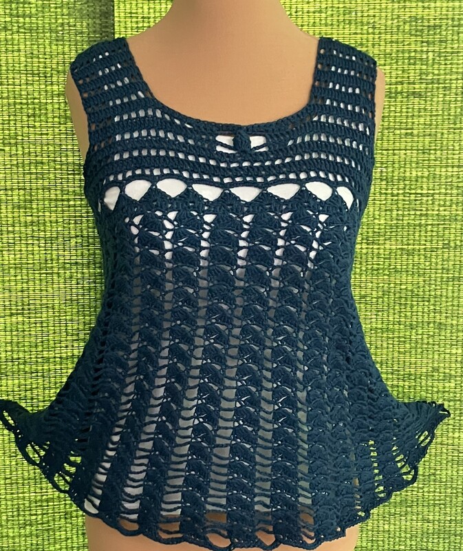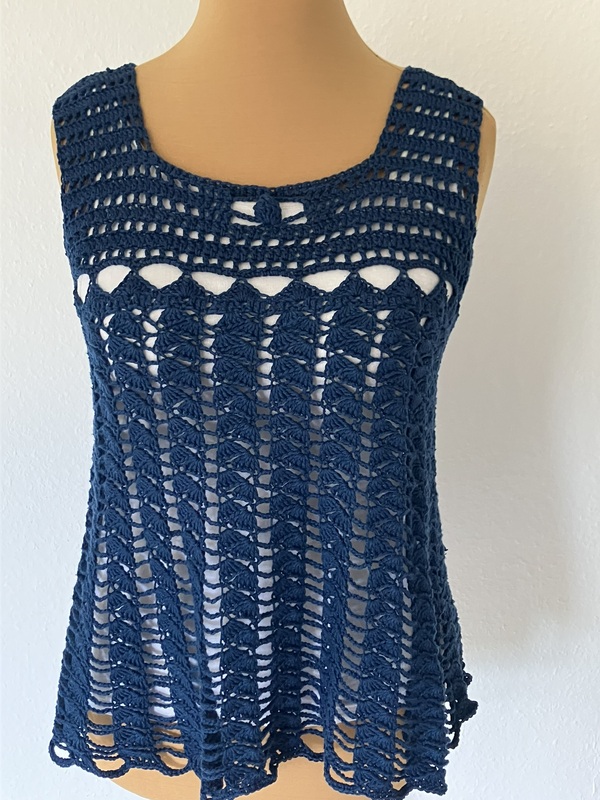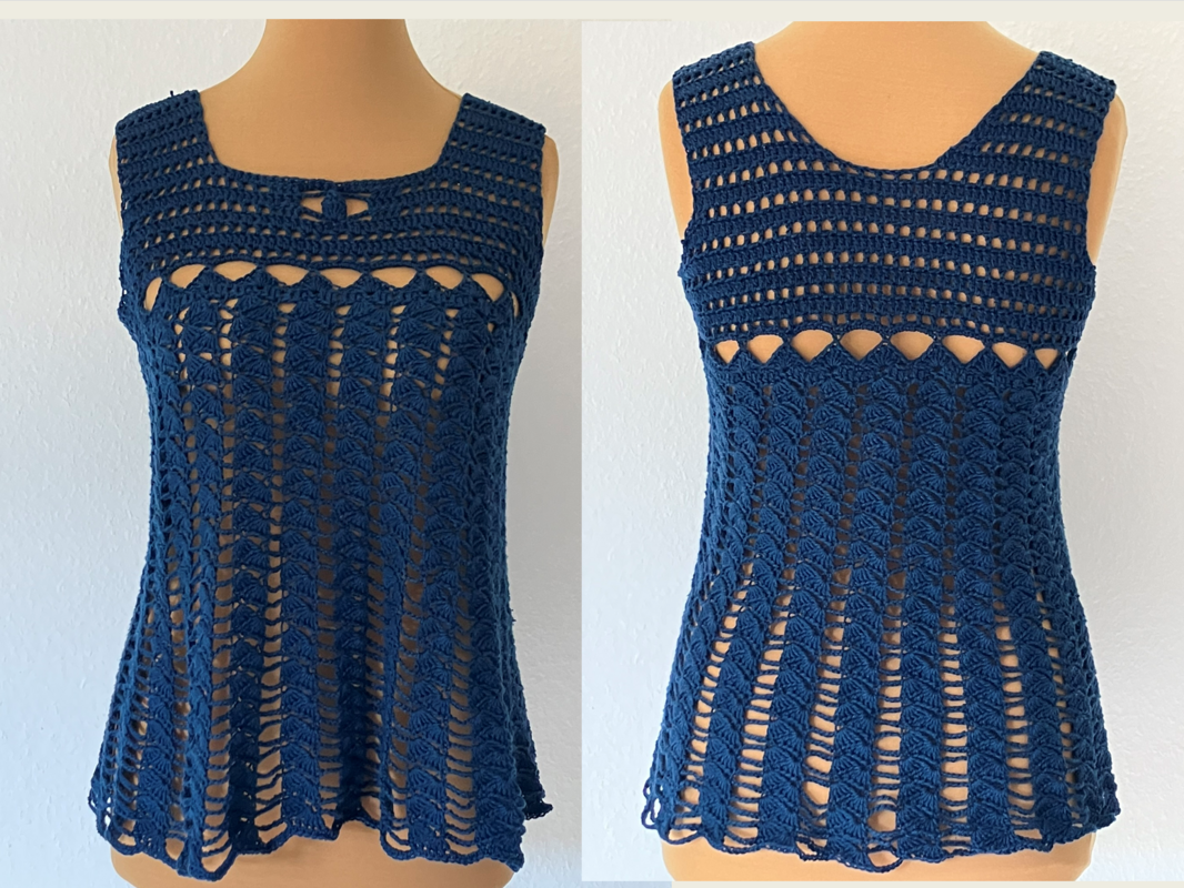 Ich zeige in Fotos alle Schritte. Du bekommst eine ausführliche Anleitung über 20 Seiten. Ich zeige, wie das Top für alle Größen zu häkeln ist.