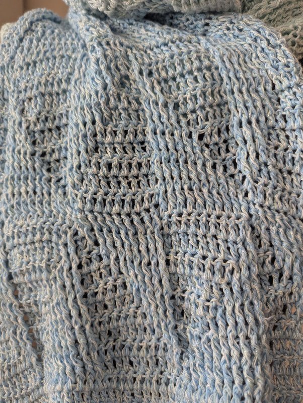 Du kannst jedes beliebige Garn verwenden. Du entscheidest mit Garn und NS ob er luftig oder kuschelig wird.