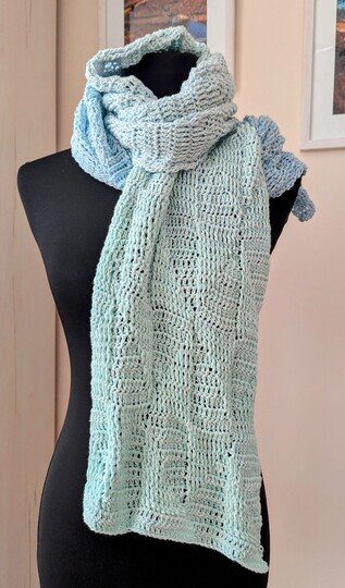 Hier erwirbt man lediglich die Anleitung zum Häkeln des Schals "Phoebe", keinen fertigen Schal.